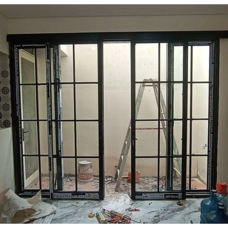 pintu kaca geser alumunium/aluminium ornamen