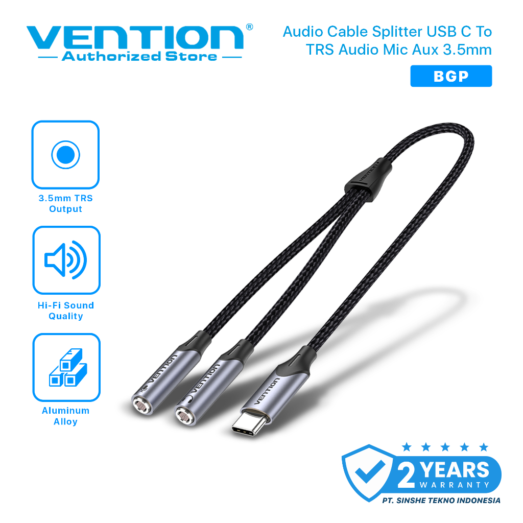 VENTION Kabel Audio Splitter USB C to TRS Audio Mic Aux 3.5mm