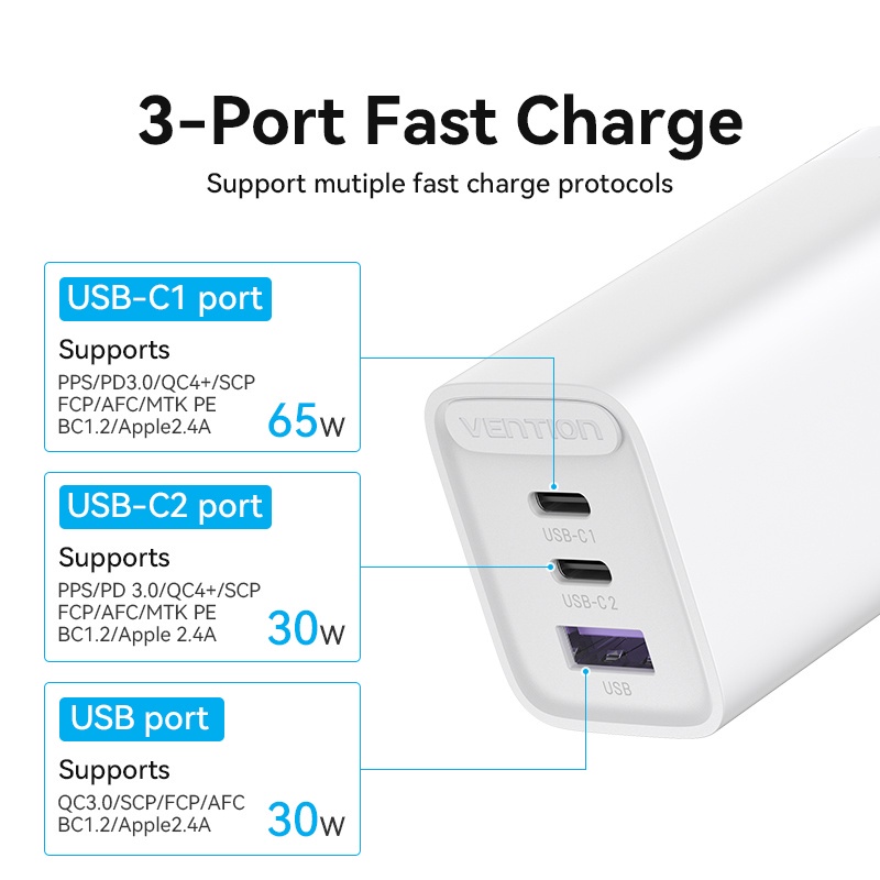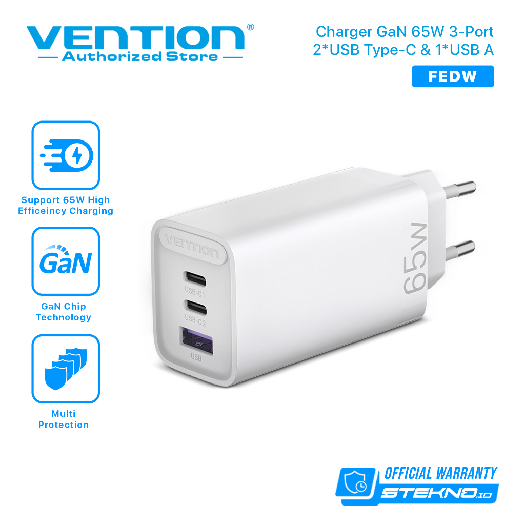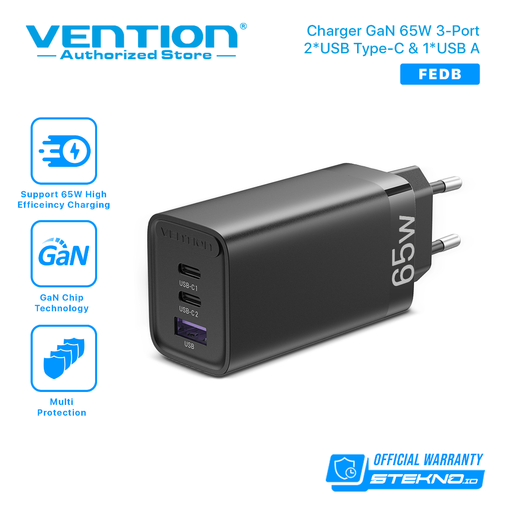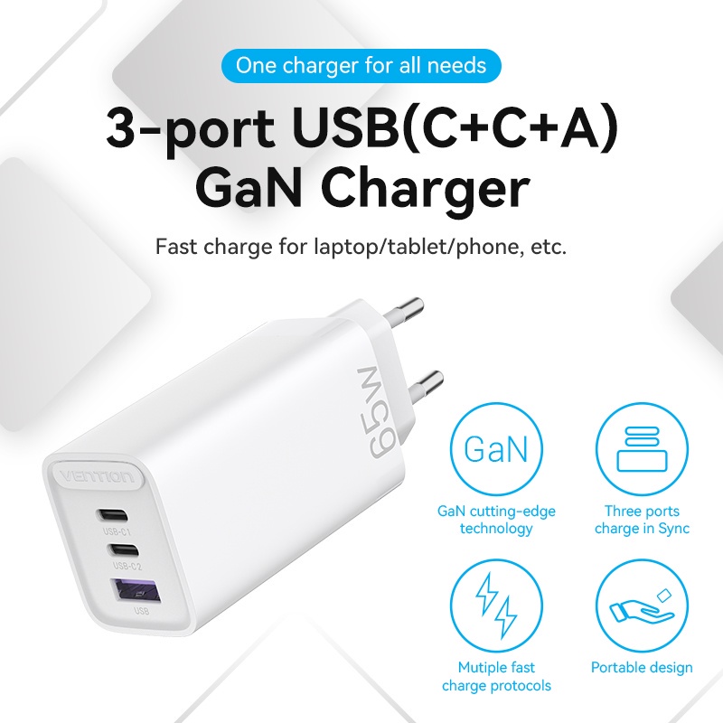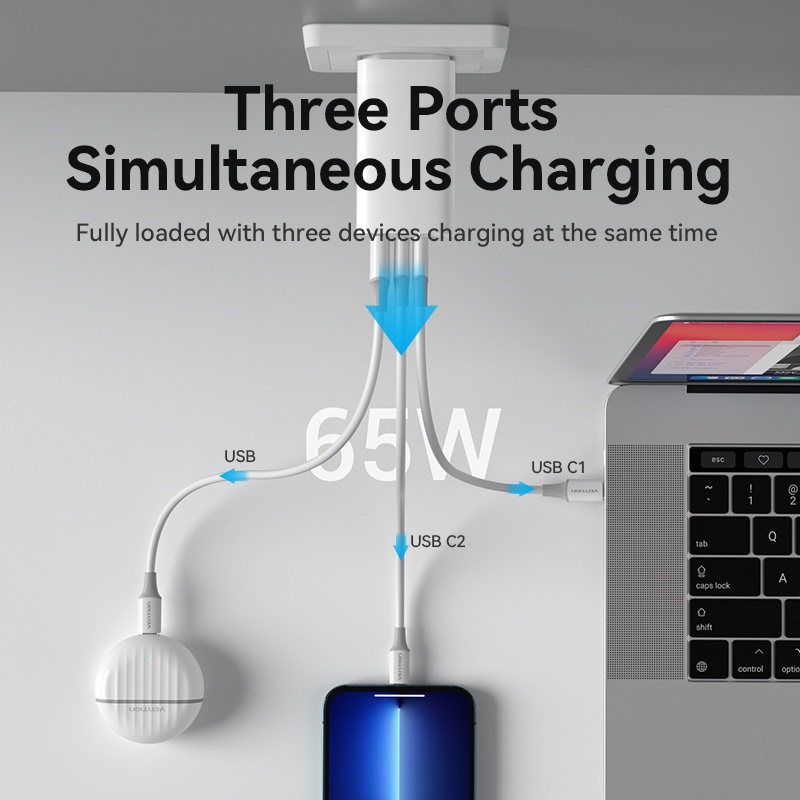 Vention Kepala Charger Multi 65W Macbook Android Gan Fast Charger PD Usb C USB