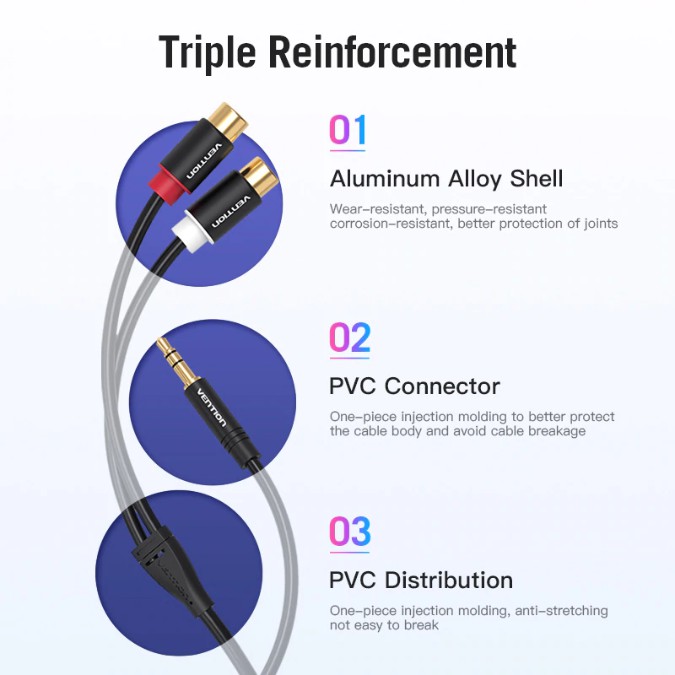 Vention Aux R02 Kabel Aux Audio Splitter 3.5mm Male to 2 RCA Female