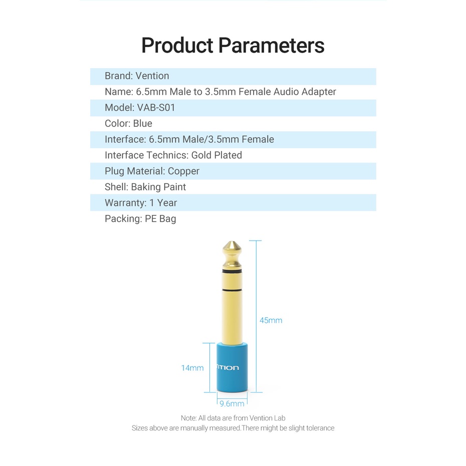 Vention Converter 6.5mm male to 3.5mm Female Audio Adapter