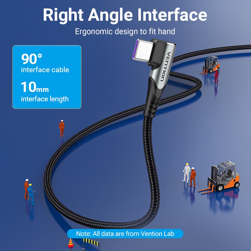 Vention Kabel Data USB Type C to C 3A 5A Right Angle Gaming Cable Fast Charging Power Delivery