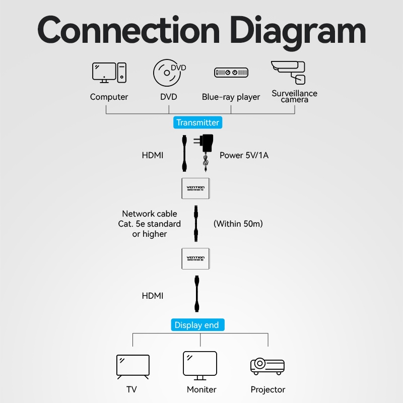 Vention HDMI Extender Via Lan RJ45 High Quality For CCTV