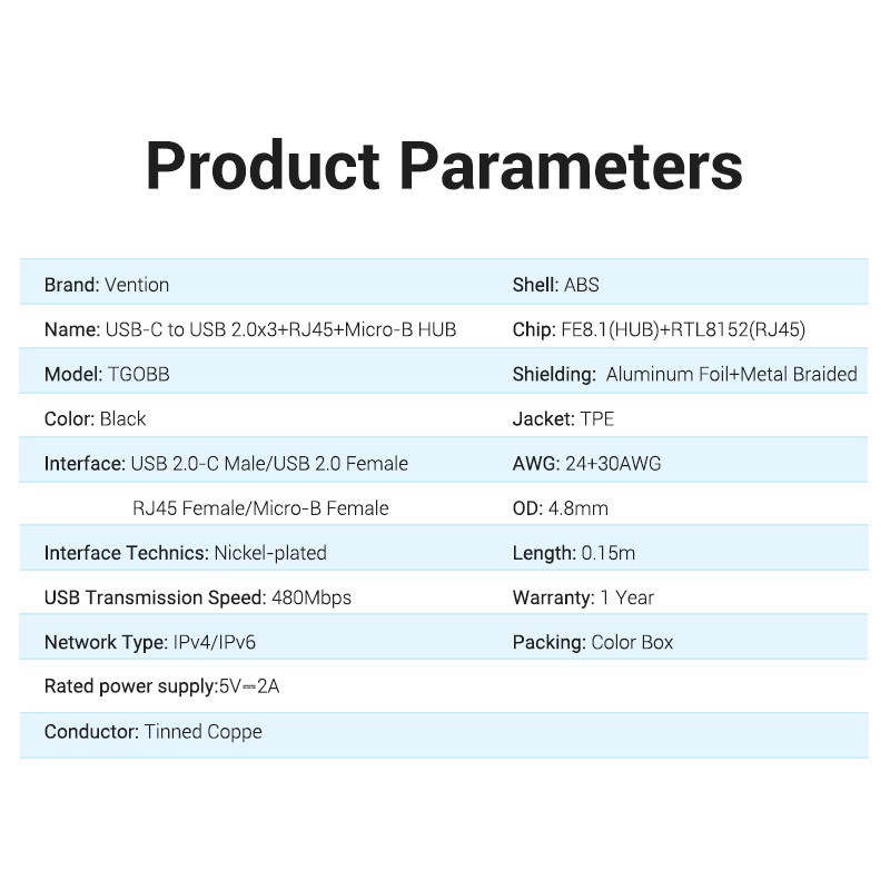 VENTION Type C USB Hub with LAN and Micro USB Power Supply