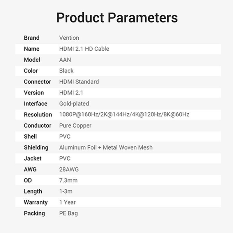 Vention Kabel HDMI v2.1 Male to Male UHD 8K 4K FHD HDR