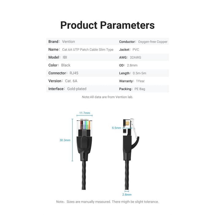 Vention IBI Kabel Lan Cat6a UTP RJ45 Gigabit Ethernet Slim