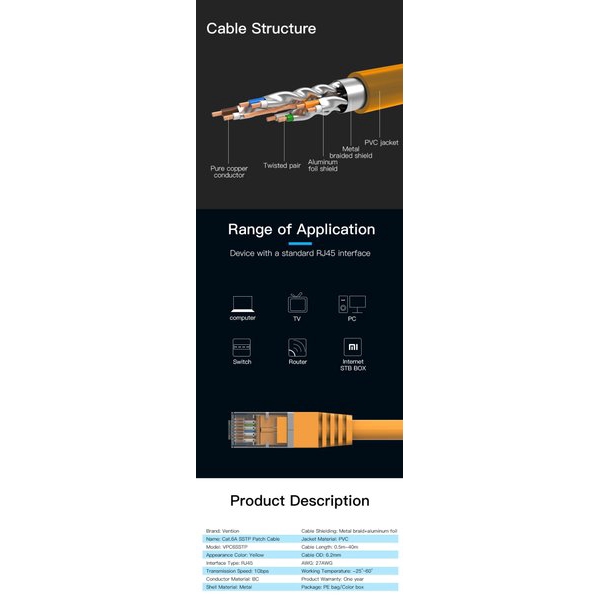 Vention VPC6 3M Kabel Lan Cat6a Pure Cat6 RJ45 Gigabit SSTP