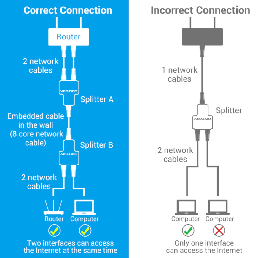 Vention Splitter Rj45 1 to 2 Adapter Black