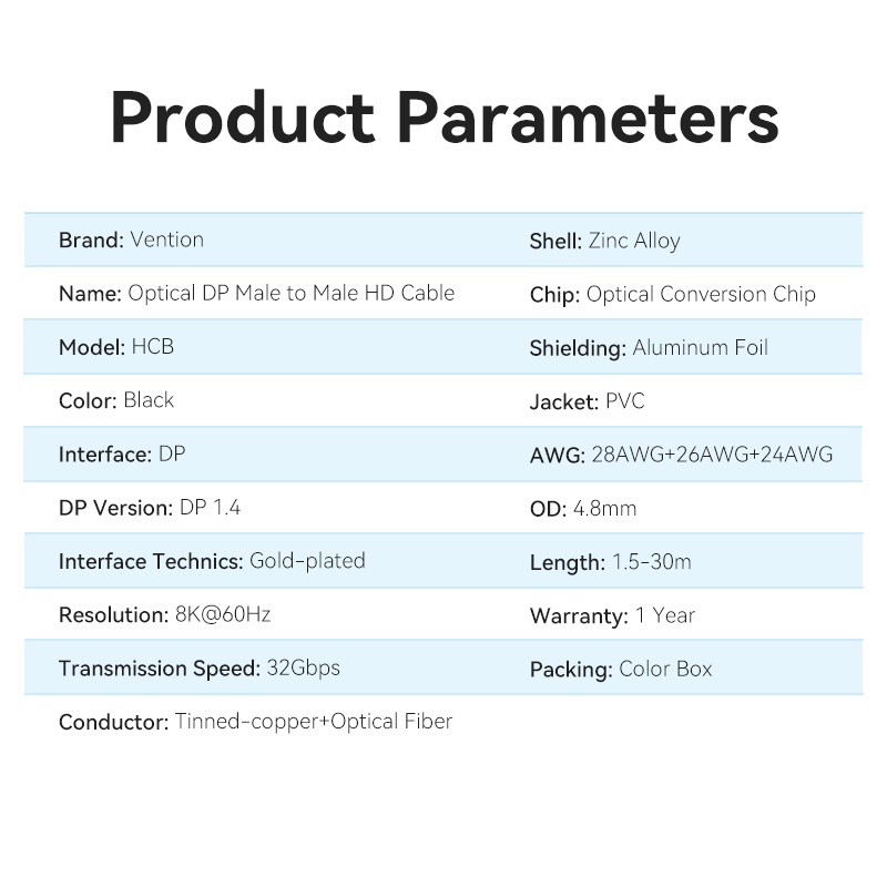 VENTION Kabel Display Port Optical DP Male 8K 4K 1080P 240hz 144hz 1.4 Premium