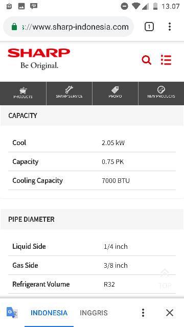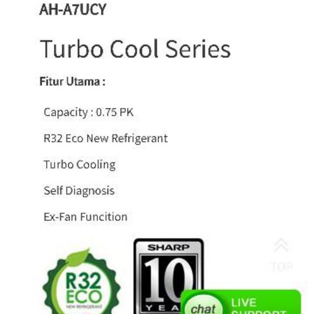 AC SHARP AH- 7UCY 3/4pk TURBO COOL SERIES R32 0,75pk Garansi 10T 7ucy Unit only