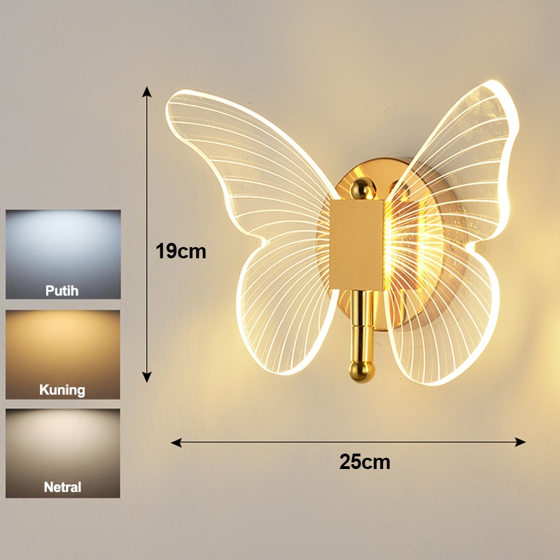 Golden LED LAMPU DINDING KUPU-KUPU LED LAMPU HIAS RUMAH LAMPU PLAFON LAMPU TIDUR 3WARNA