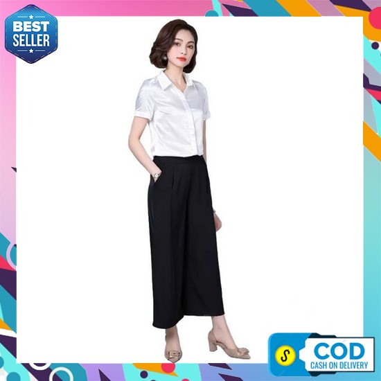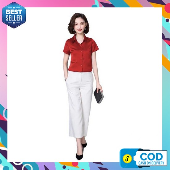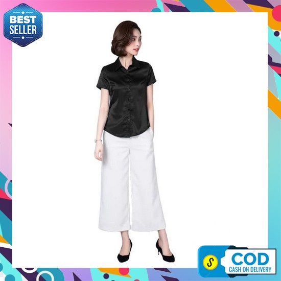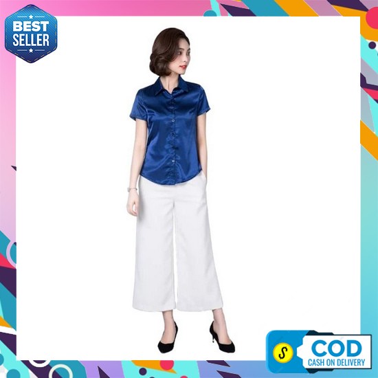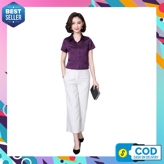 Kemeja Wanita Murah Elegan Original Premium Import Kekinian Simple Ter Kemeja Wanita Gaya Korea Lengan Pendek Murah Terbaru - Jfashion Haruka - Ungu, M