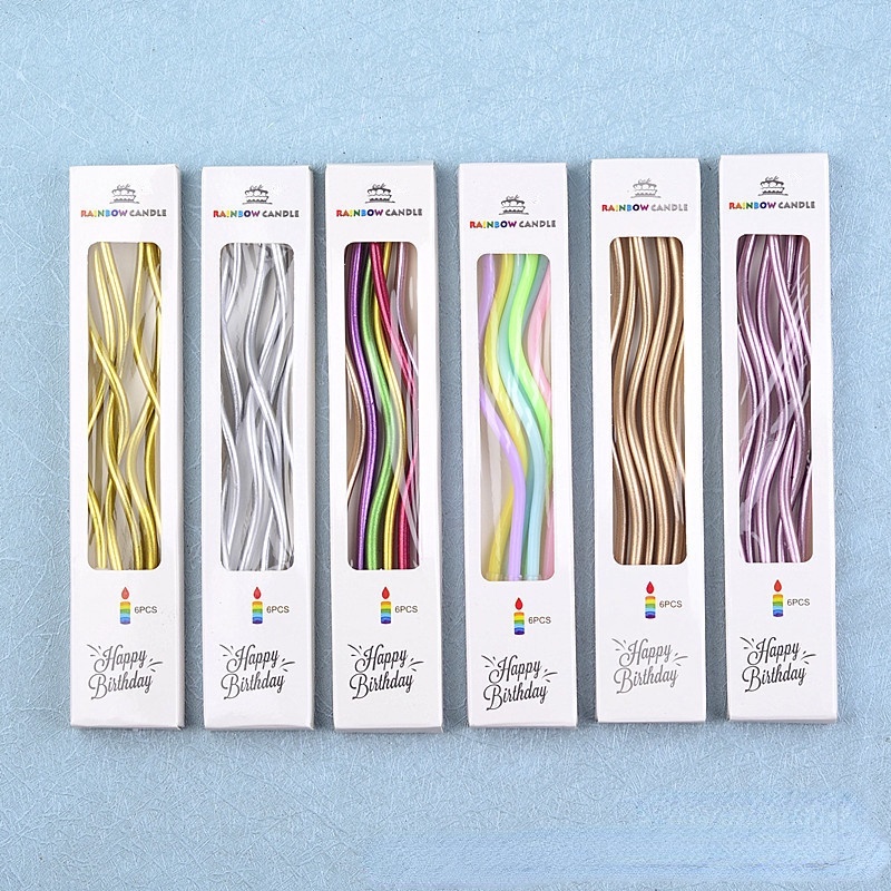 Lilin Ulang Tahun Spiral/Lilin Panjang Lilin Ulang Tahun Spiral Warna Warni Lilin Keriting isi 6pcs Lilin dekorasi ulang tahun