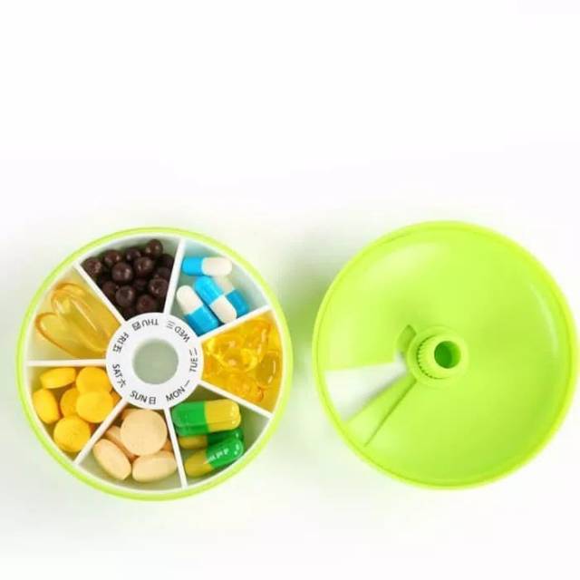 Kotak obat harian 7 hari - tempat vitamin bulat bundar tujuh gride travel medicine organizer F5