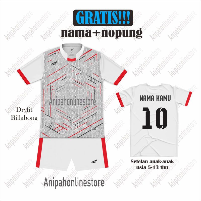 ( custom nama nomor punggung ) baju bola anak anak/ stelan fufsal junior usia 5 14 tahun