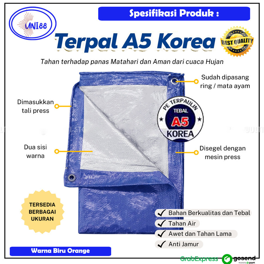 Terpal Korea Premium Terpal Press Anti Air dan Panas Terpal 4x6 3x3 2x3 4x3 Meter Tebal Terpal A5 Korea Penutup Atap Rumah Truk Kandang Tenda Kolam Ikan Serbaguna Siap Pakai Terpal Press Lubang Kancing Mata Ayam Kuat Tahan Cuaca Murah Anti Bocor