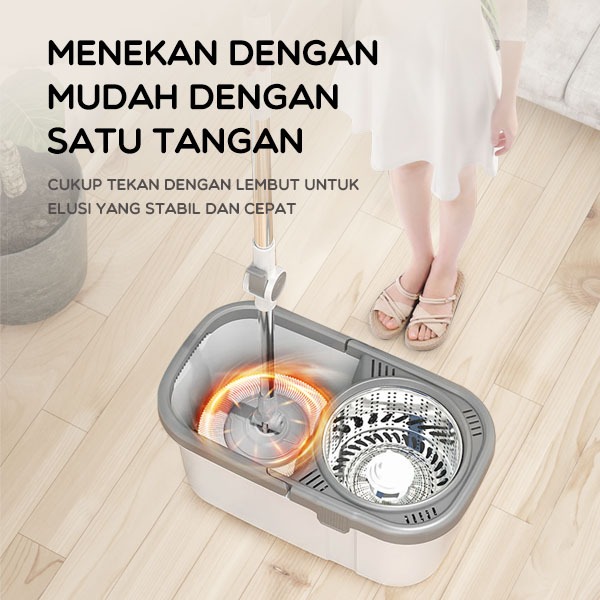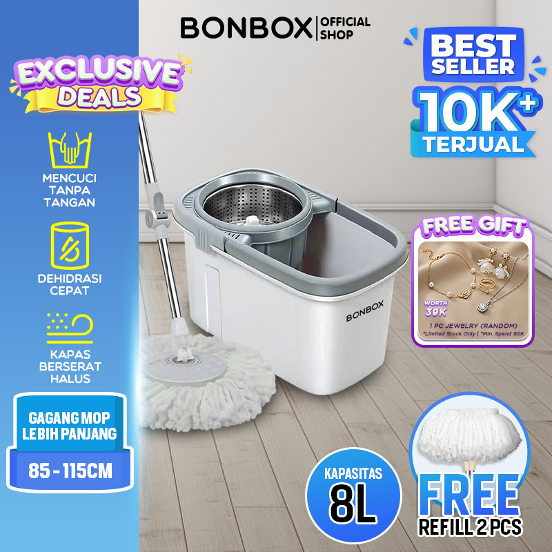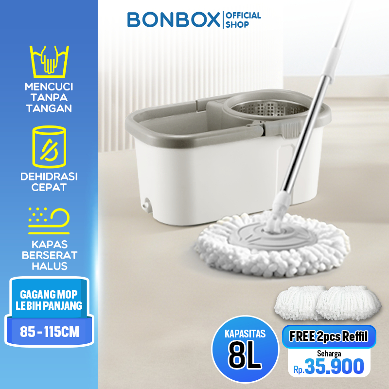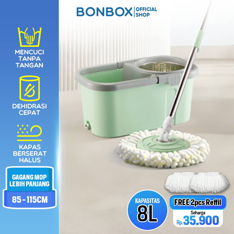 [VIRAL] BONBOX Alat Pel Lantai Ember 2in1 DAPAT 2 KAIN PEL Ember Spin Mop Mencuci Membilas Pembuang Air Otomatis BCT3612B