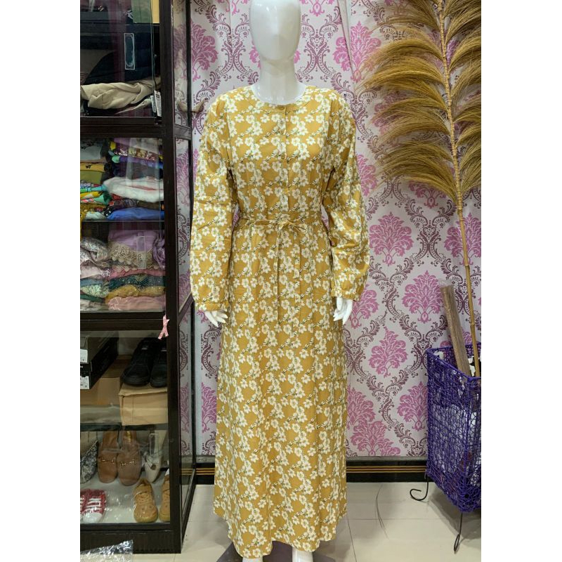 Geela | Gamis bunga kuning size : L Brand Matahari ori