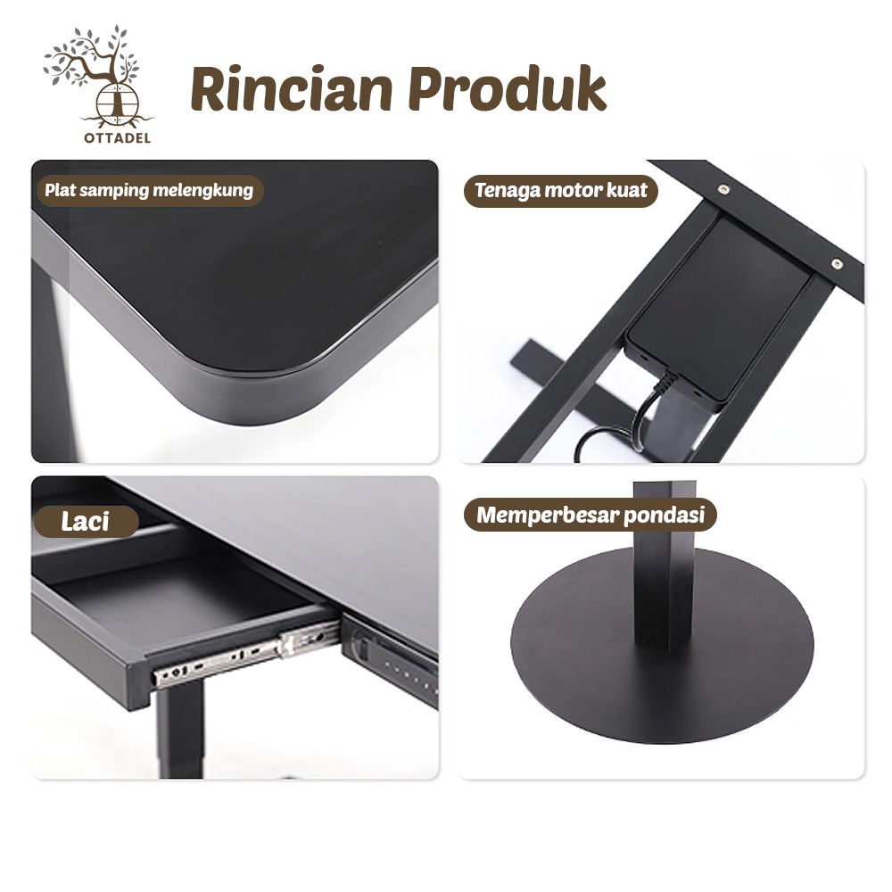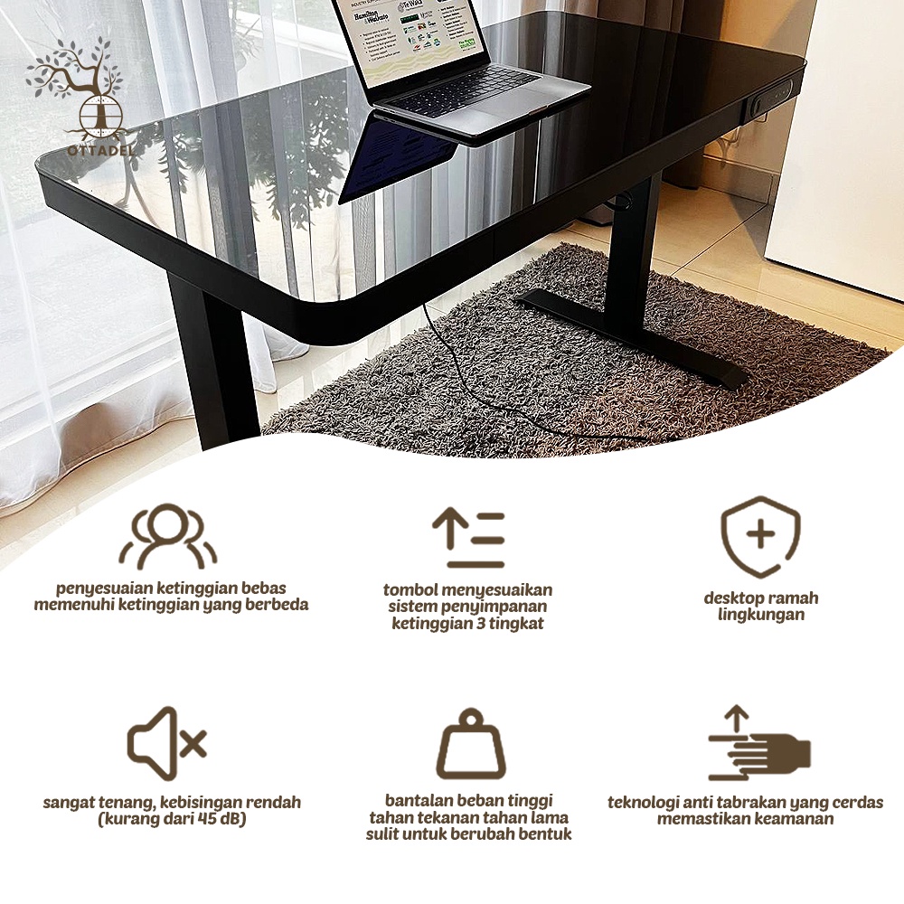 Ottadel Adjustable Electric Office Standing Desk Dual Motors / Meja Naik Turun Otomatis menggunakan Listrik