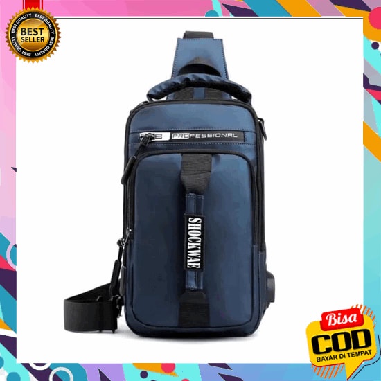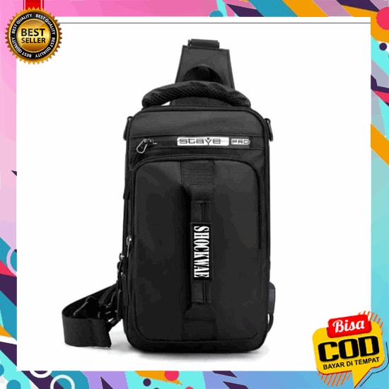 Tas Selempang Branded Import Murah Premium Pria Original Distro Berkualitas Keren Kekinian Terbaru Tas Waistbag Slempang Pria / Wanita Terbaru Shockwae Original - Hitam