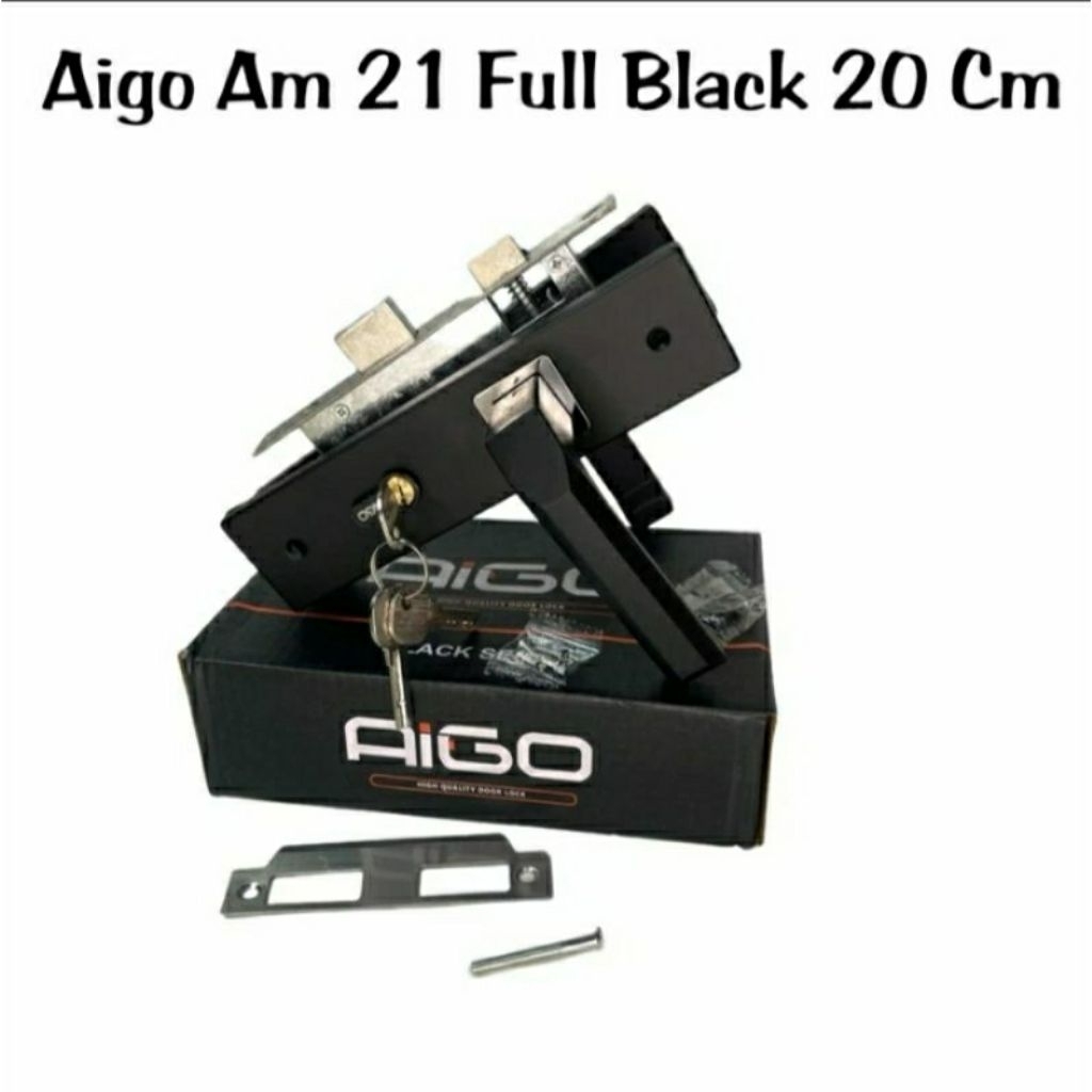 AIGO (1 Set) Handle Kunci Pintu Tanggung 20cm Hitam Dof