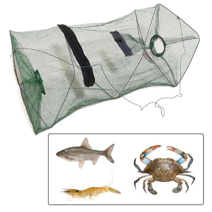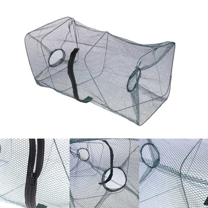 BUBU jaring perangkap ikan udang kepiting lobster 2 lubang Lipat portable