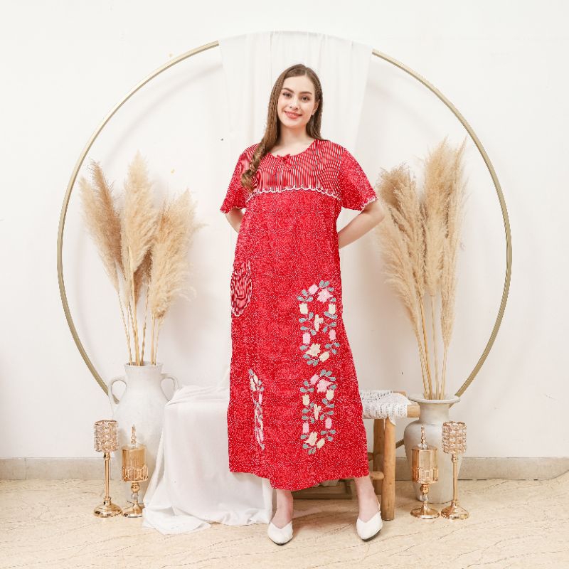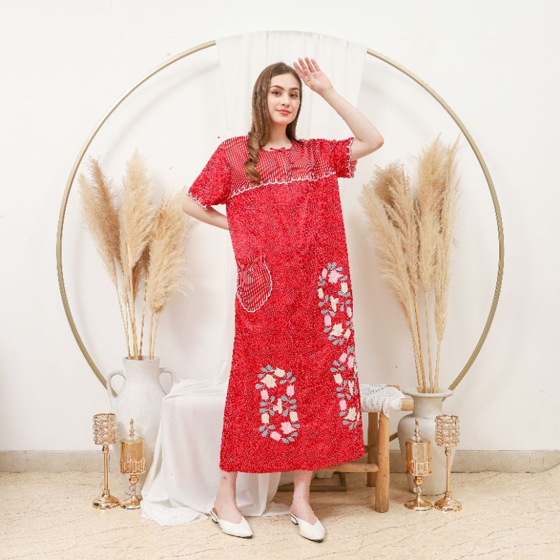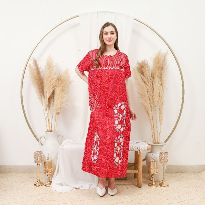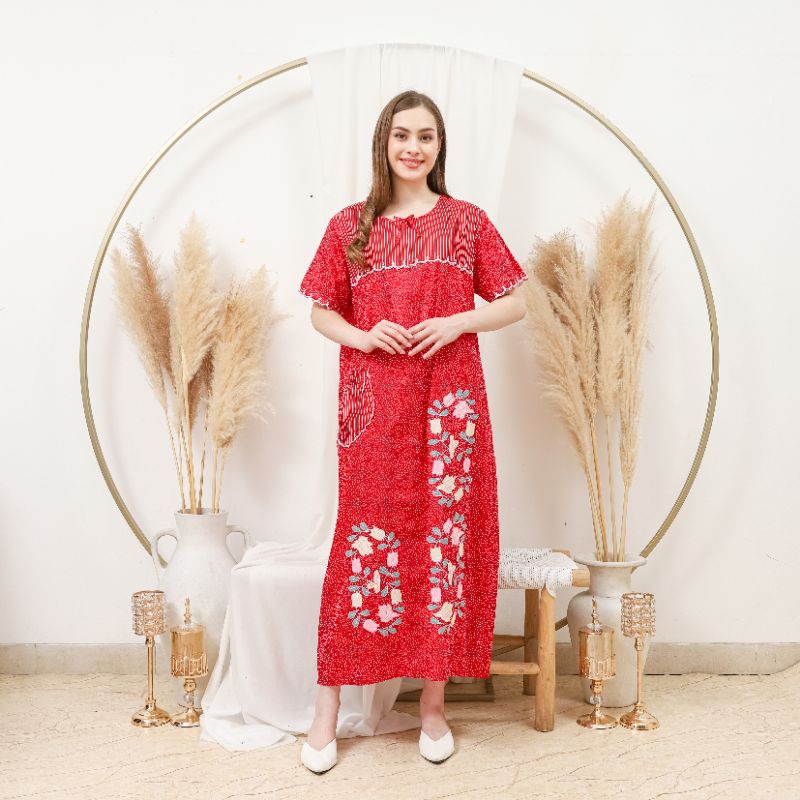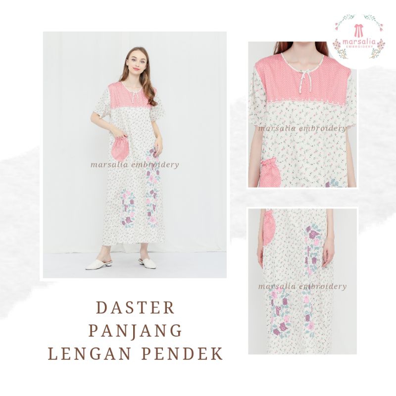 MARSALIA Daster Panjang Lengan Pendek Bordir Premium Katun Jepang