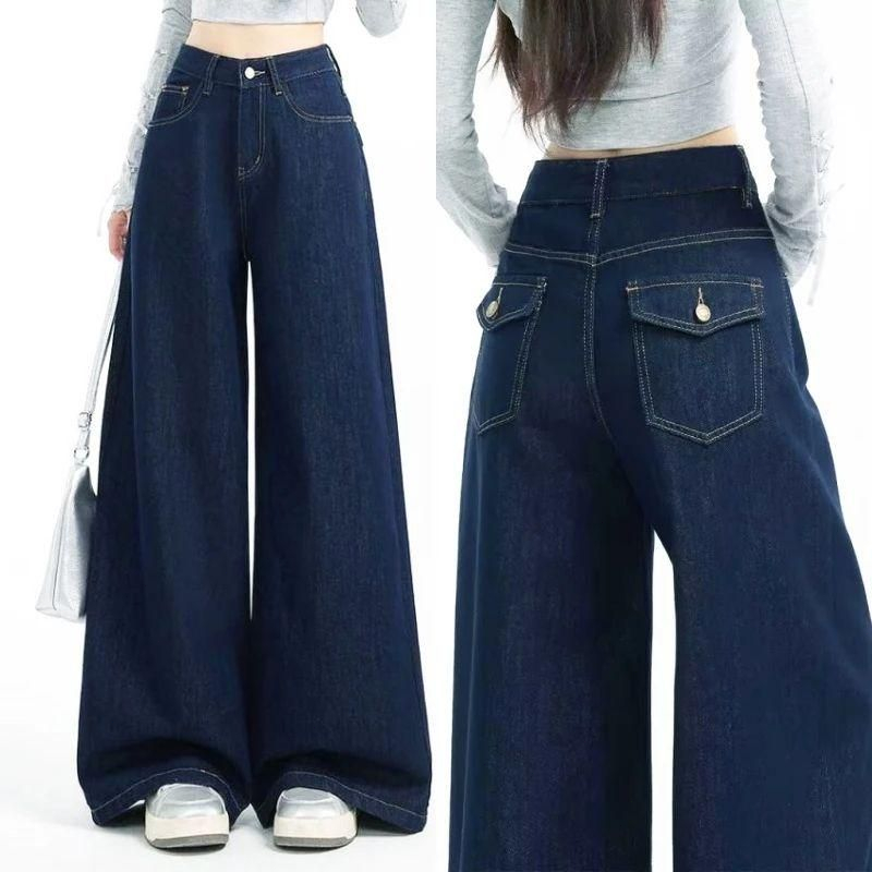 READY STOCK celana highwaist jeans wanita celana jeans panjang wanita celana kulot/ straight Celana jeans longgar denim cewek ootd
