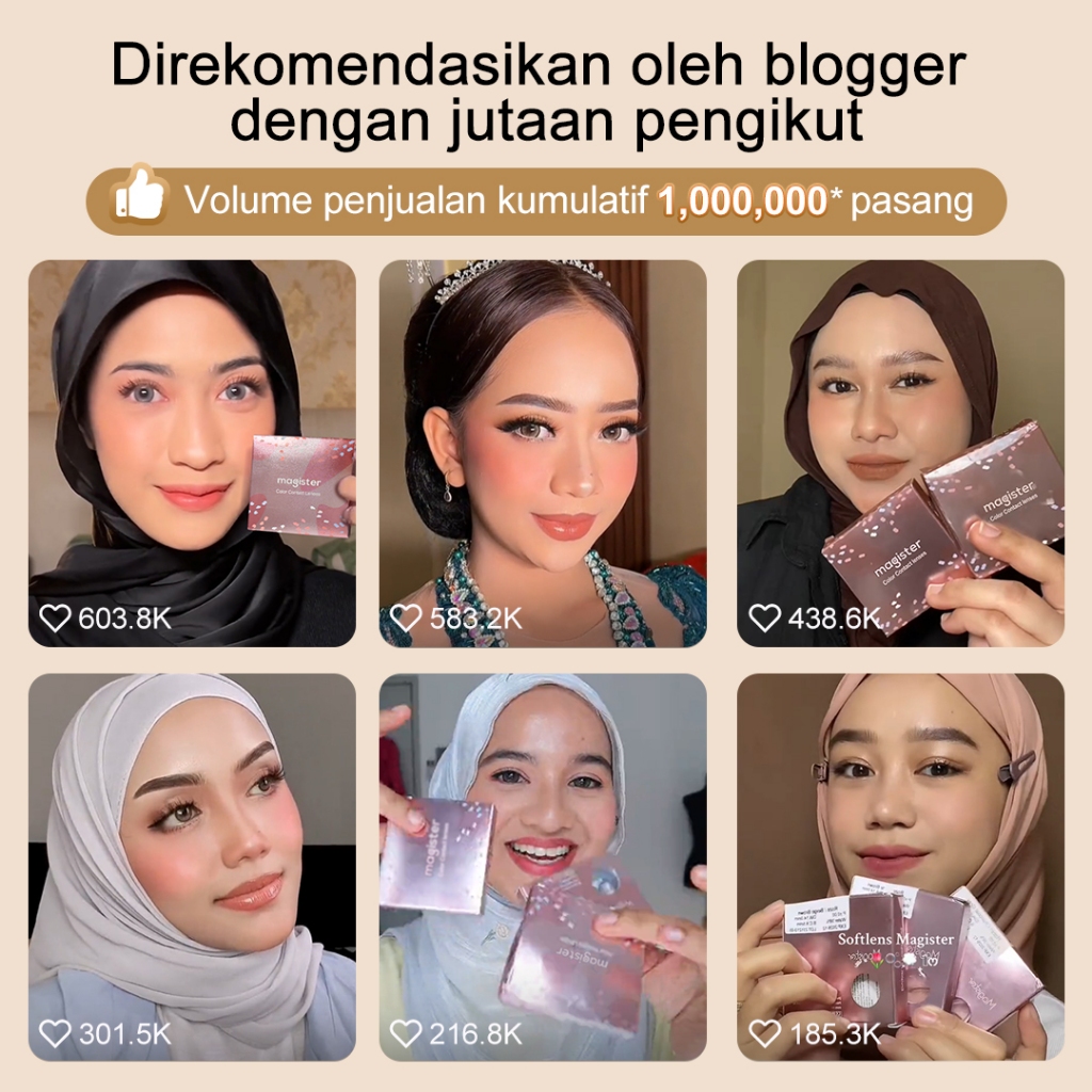 Magister Softlens Minus Blush Girl Seri 6 Bulan 14.2MM Lensa Kontak 1 pasang Buff Brown / Shadow Gray Soflens