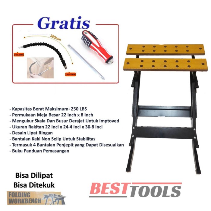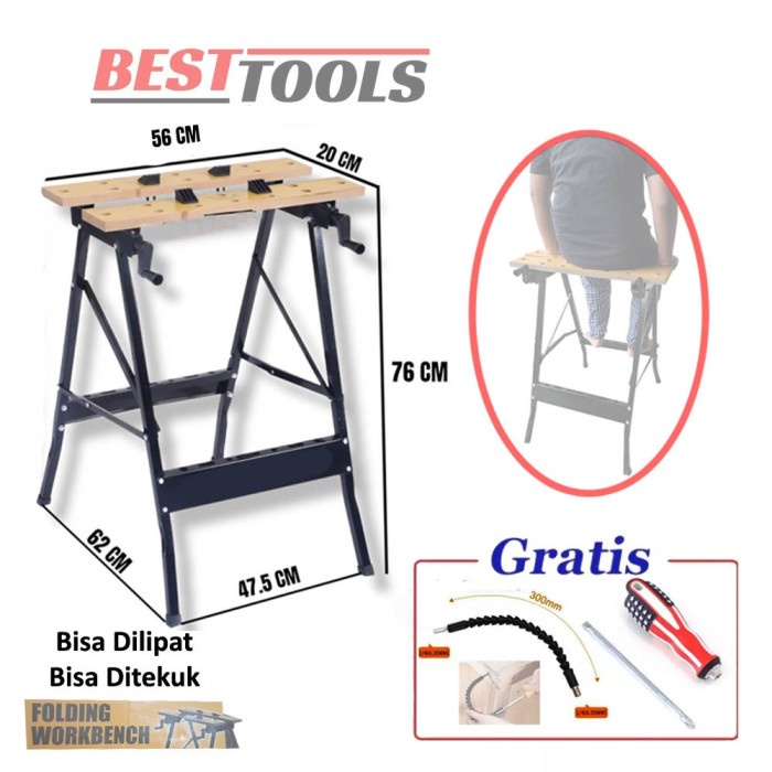 Meja Kerja Workbench Krisbow Kayu Craft Work Original 22 Inch Lipat