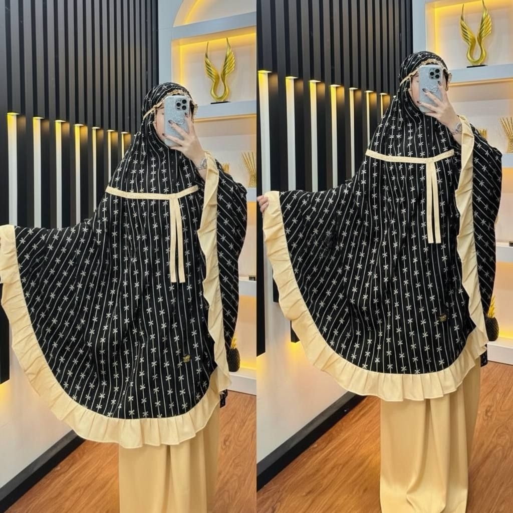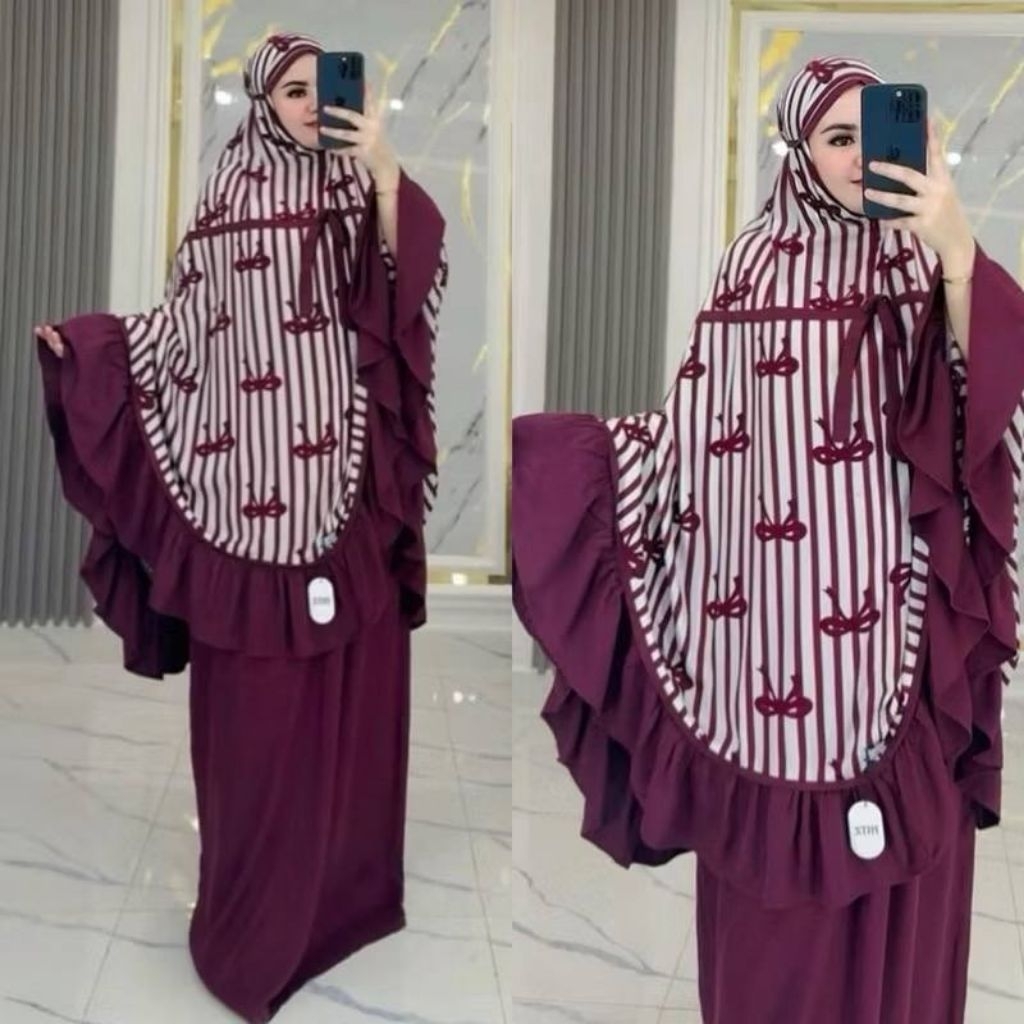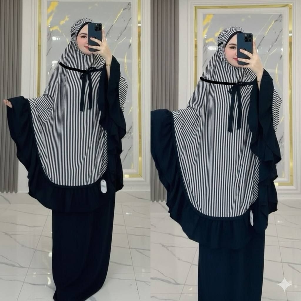 Mukena nuriya super jumbo rayon twill adem-mukena motif pita salur
