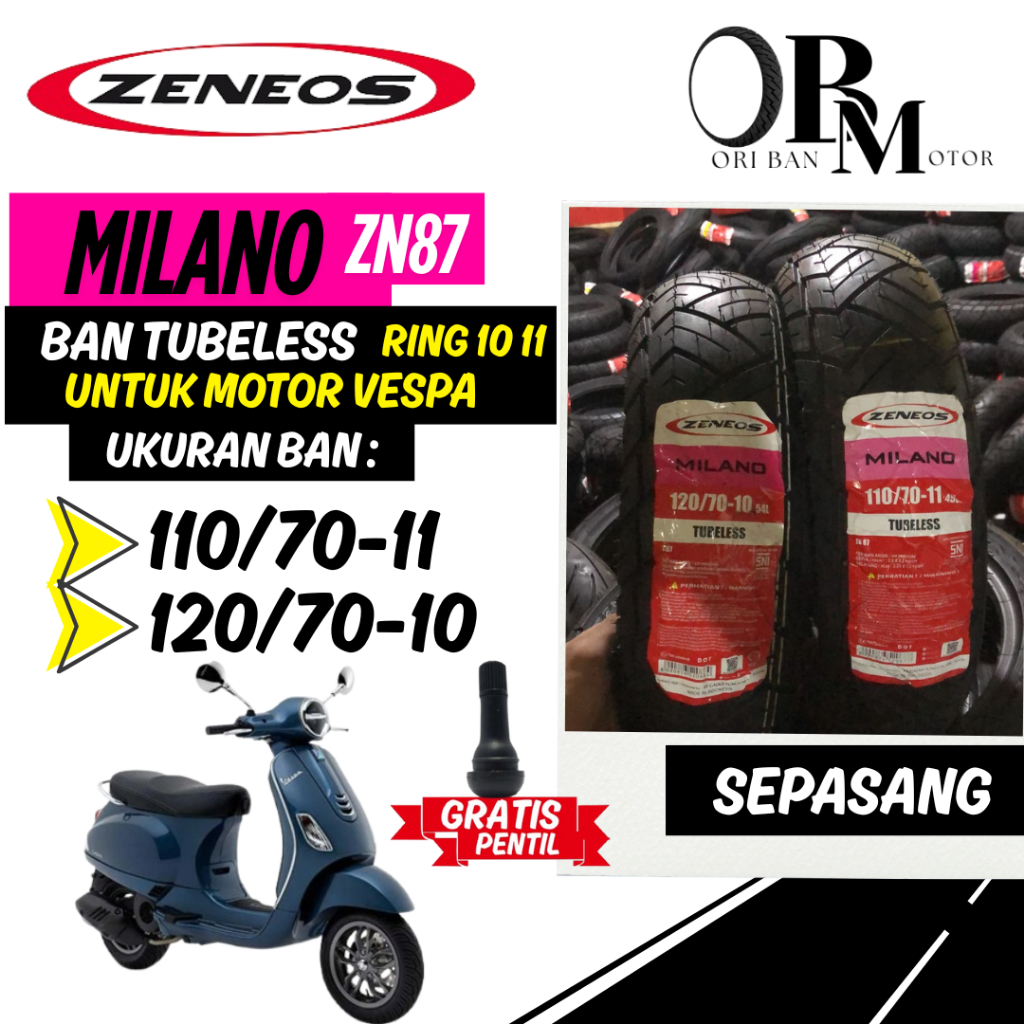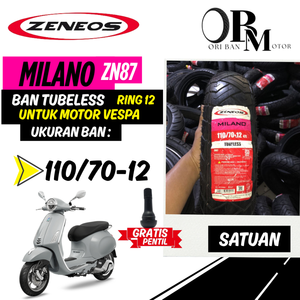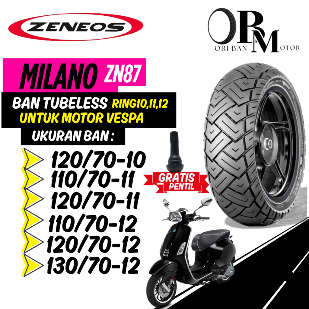Ban Motor Vespa Zeneos MILANO Zn87 Ring 10,11&12 Medium Compound Untuk Motor Vespa Lx 125, vespa iget, Vespa Sprint, Vespa primavera, DLL