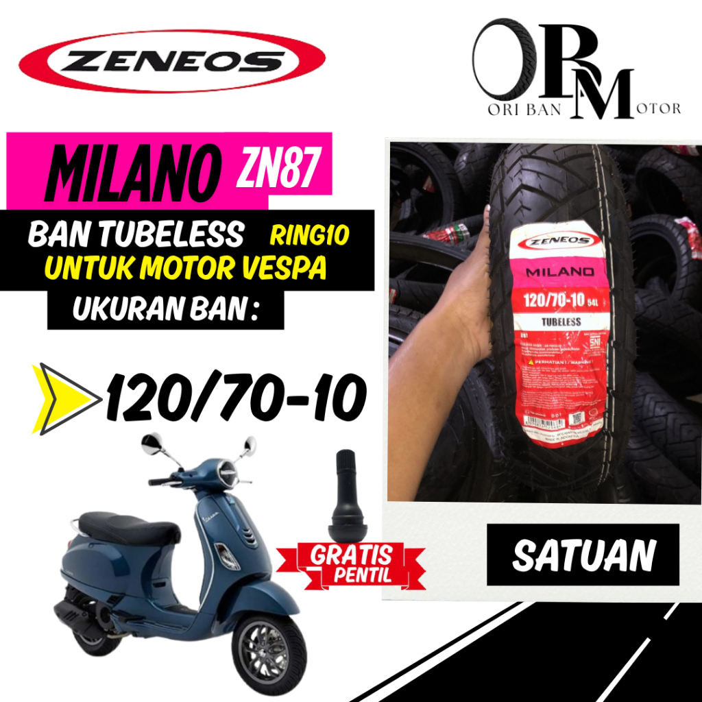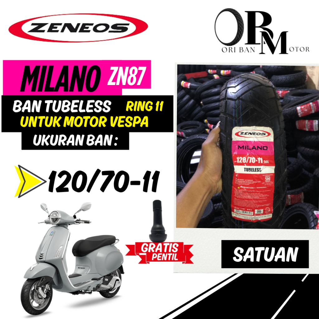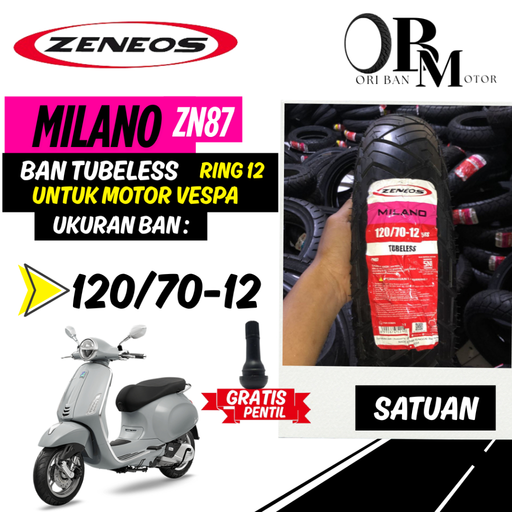 Ban Motor Vespa Zeneos MILANO Zn87 Ring 10,11&12 Medium Compound Untuk Motor Vespa Lx 125, vespa iget, Vespa Sprint, Vespa primavera, DLL
