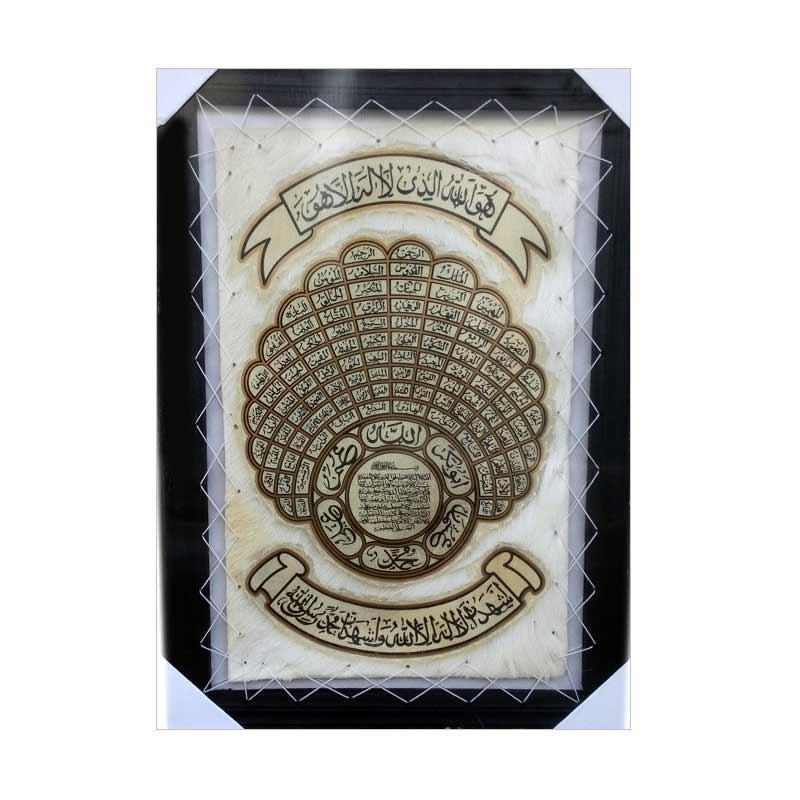 Kaligrafi Asmaul Husna Kipas Kulit Kambing M 44x34 Cm - Bingkai Hitam
