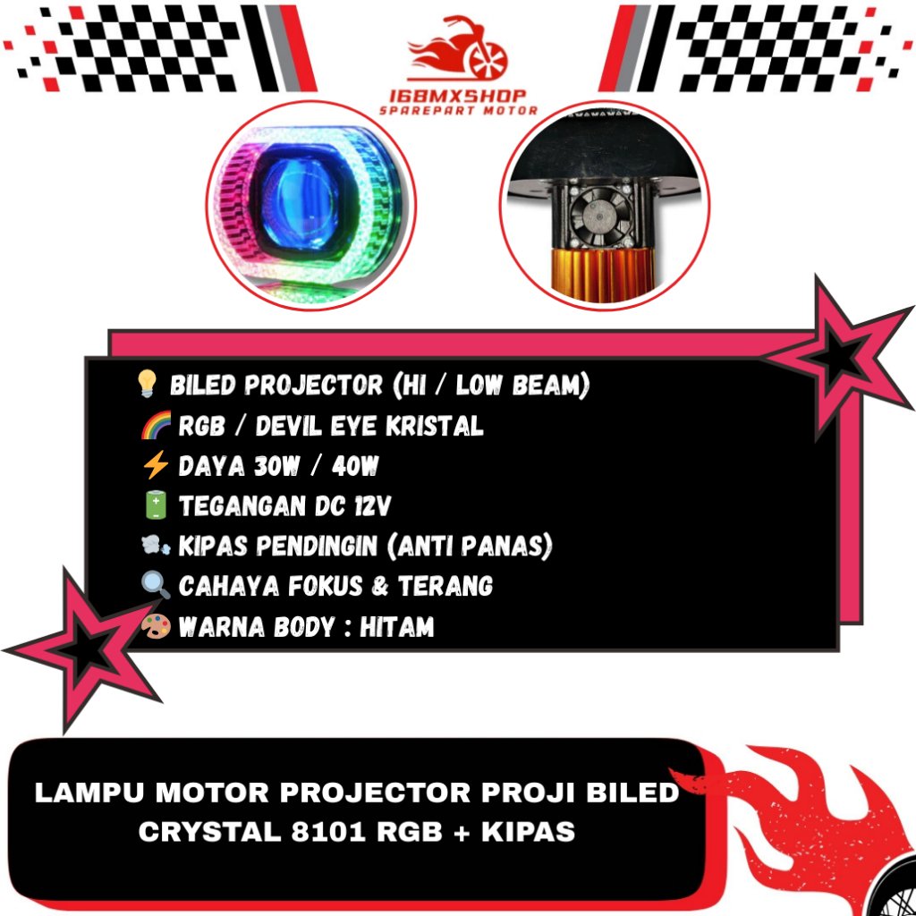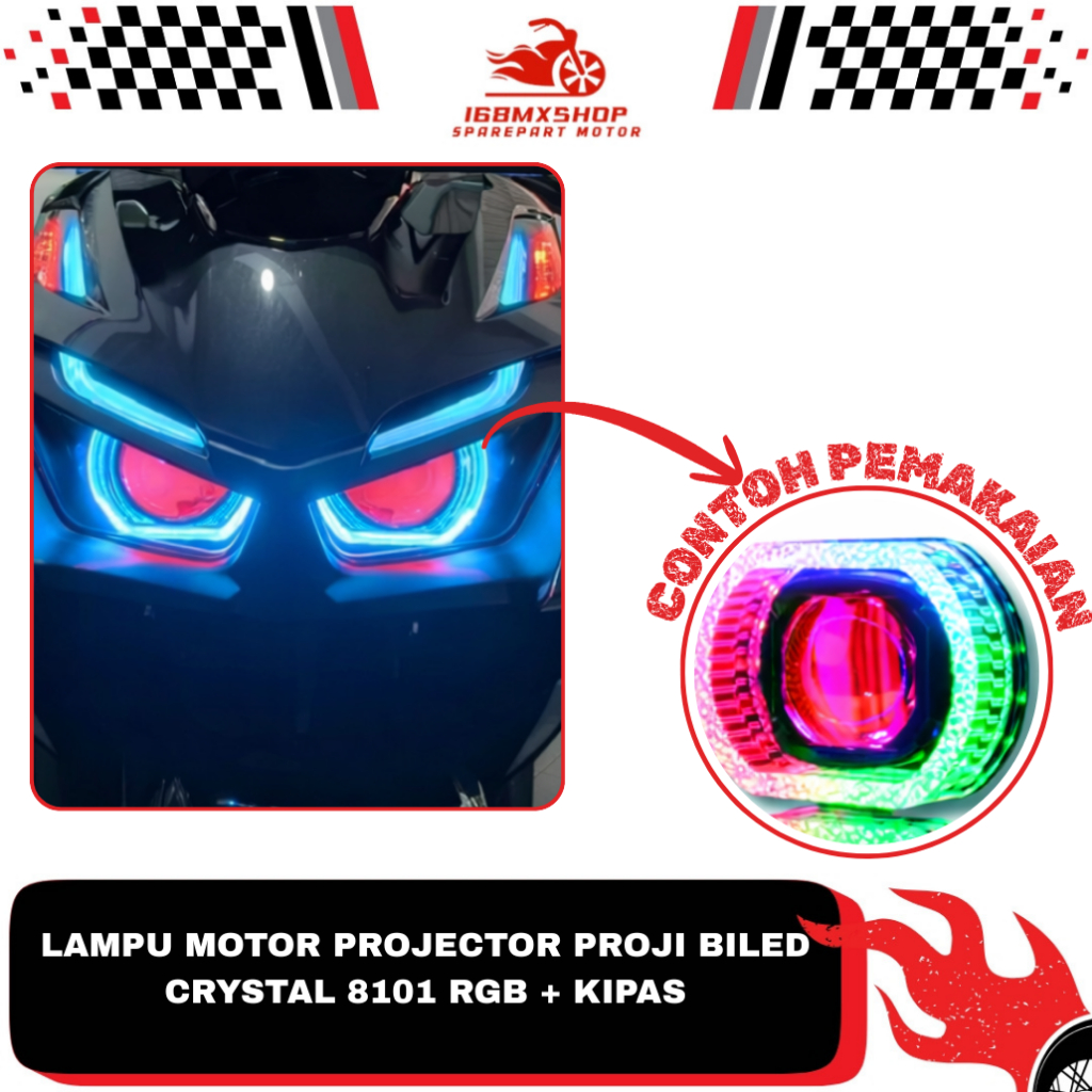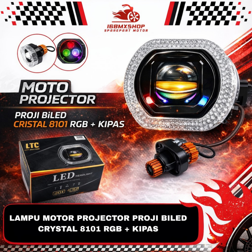 Lampu Motor Projector Proji Biled Kristal 8101 RGB Plus Kipas Pendingin " LTC "