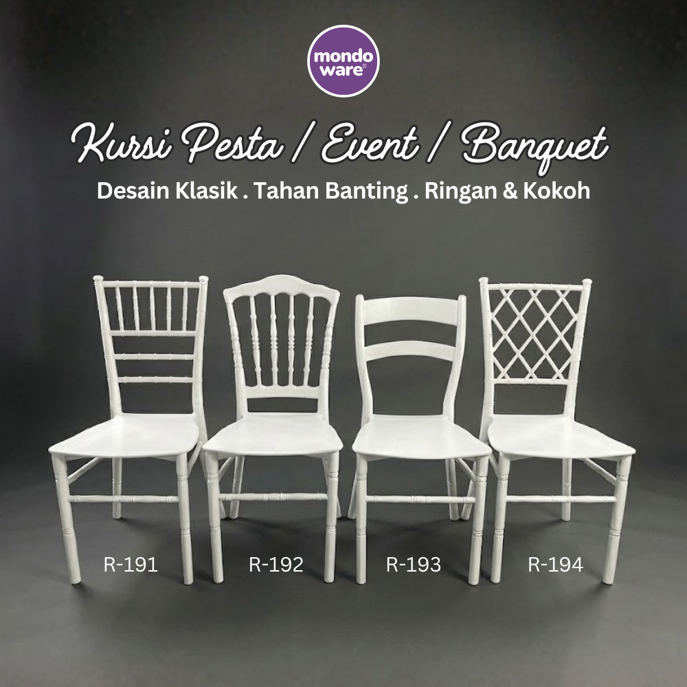 MONDOWARE | Kursi Wedding Pesta Event Banquet Akad Pelaminan / Kursi Plastik Premium Classic Tiffany Chiavari Napoleon French Bistro Ladder Crossback Crown Tiara Chair / Kursi Kafe Cafe Klasik / Kursi Fiberglass PP (R191 R192 R193 R194)