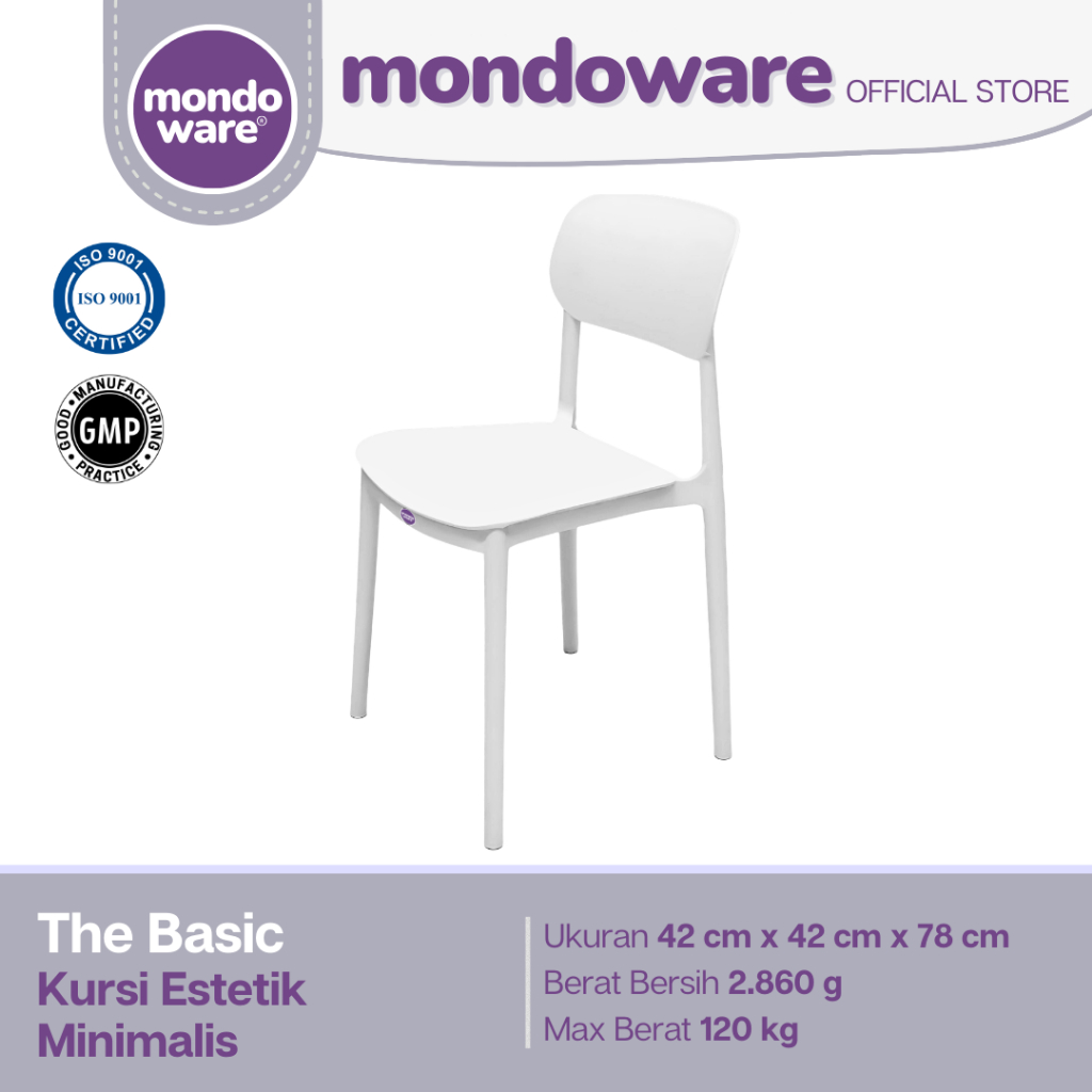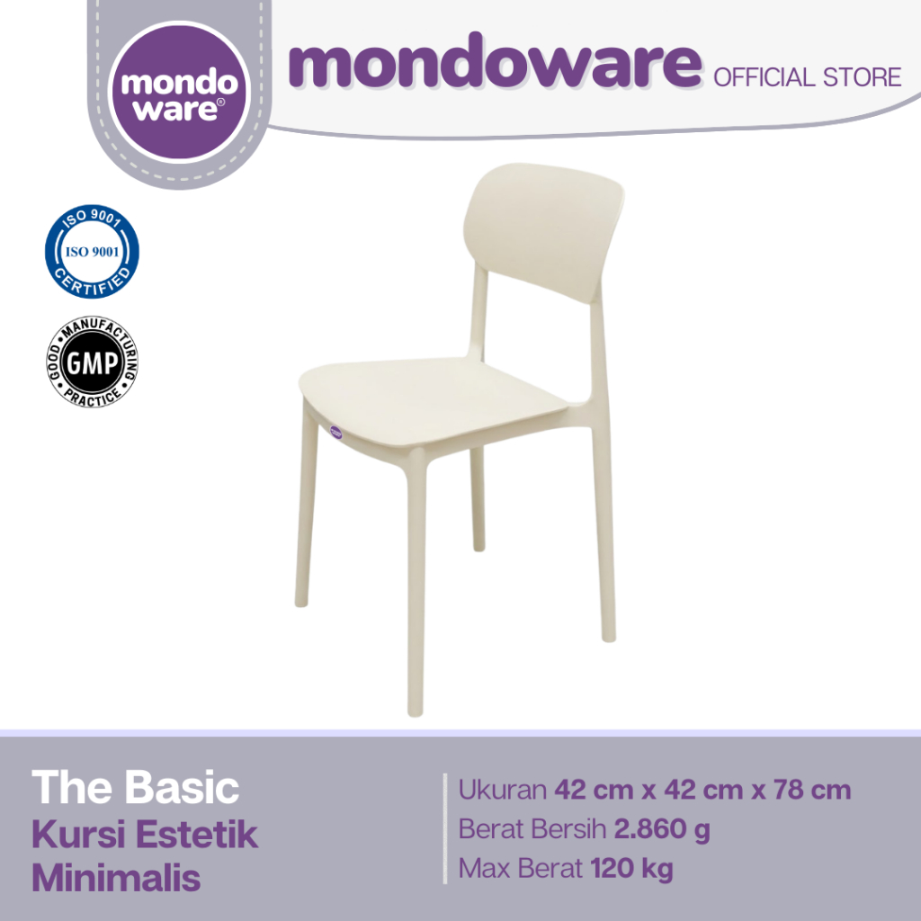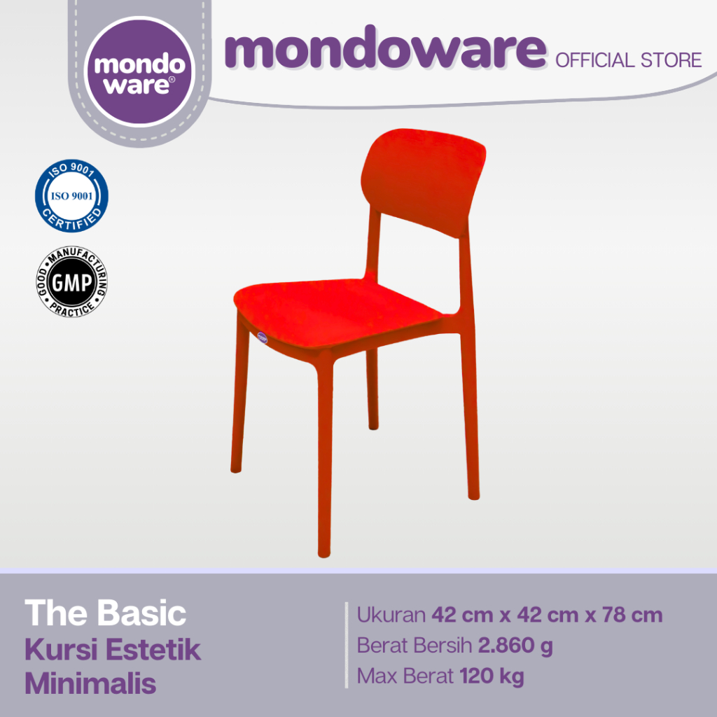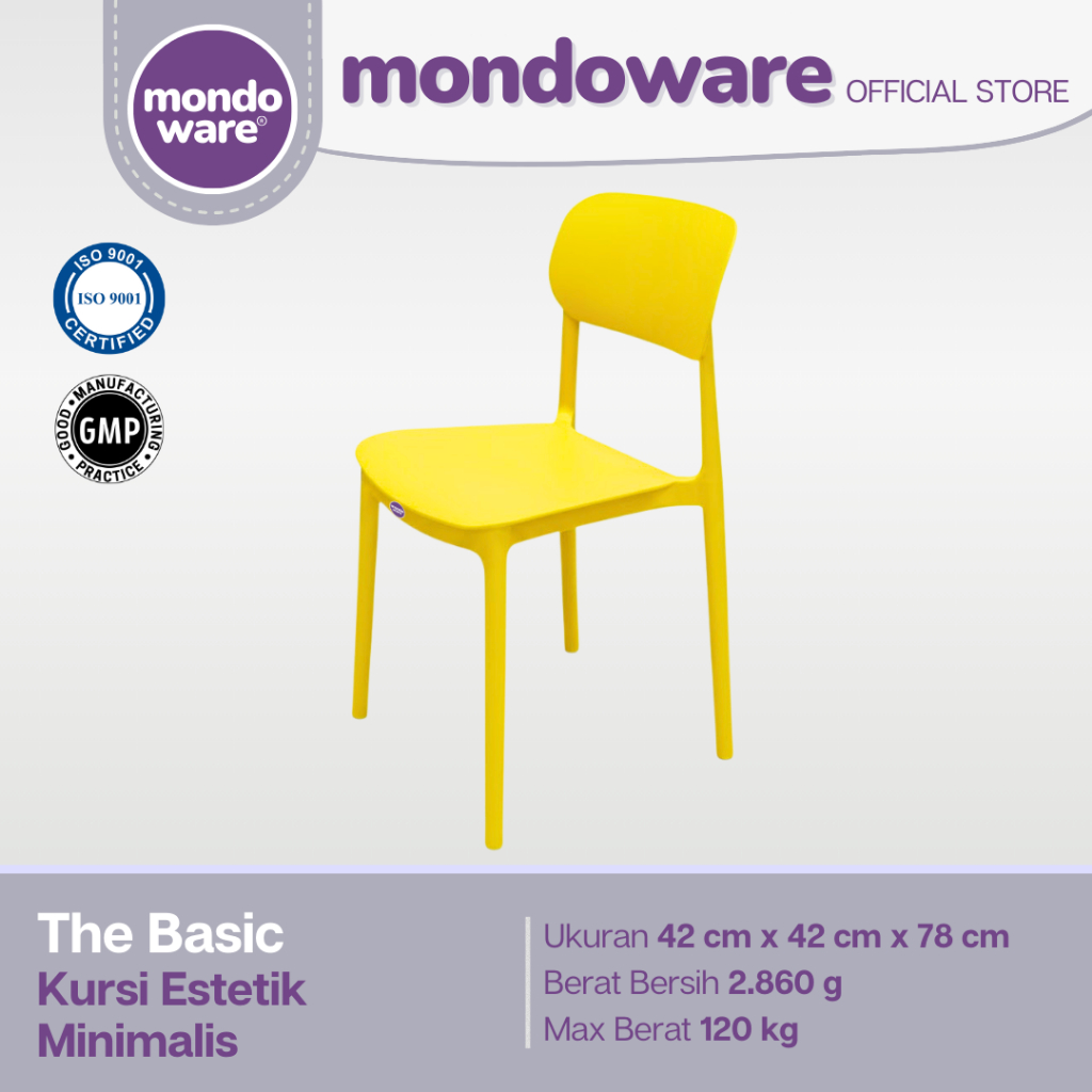 MONDOWARE | Kursi Makan Estetik Minimalis Ergonomis Plastik Fiberglass PP (S1-THE BASIC) - Kursi Tunggu Kantor/Kursi Kerja Belajar/Kursi Teras Santai/Kursi Cafe Kafe Restoran Hotel Kantin HoReKa/Kursi Sekolah Event Outdoor Pameran Gereja