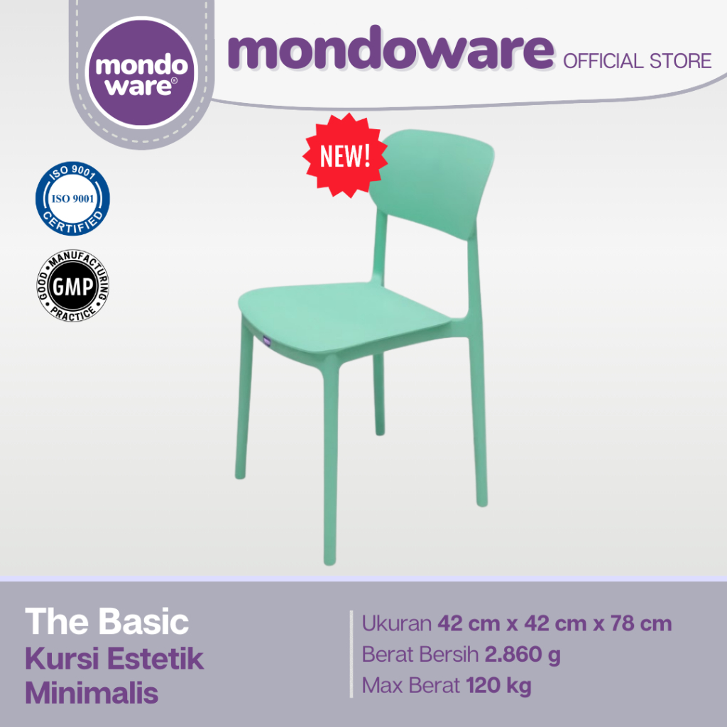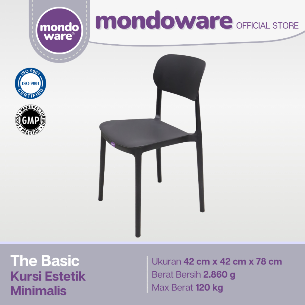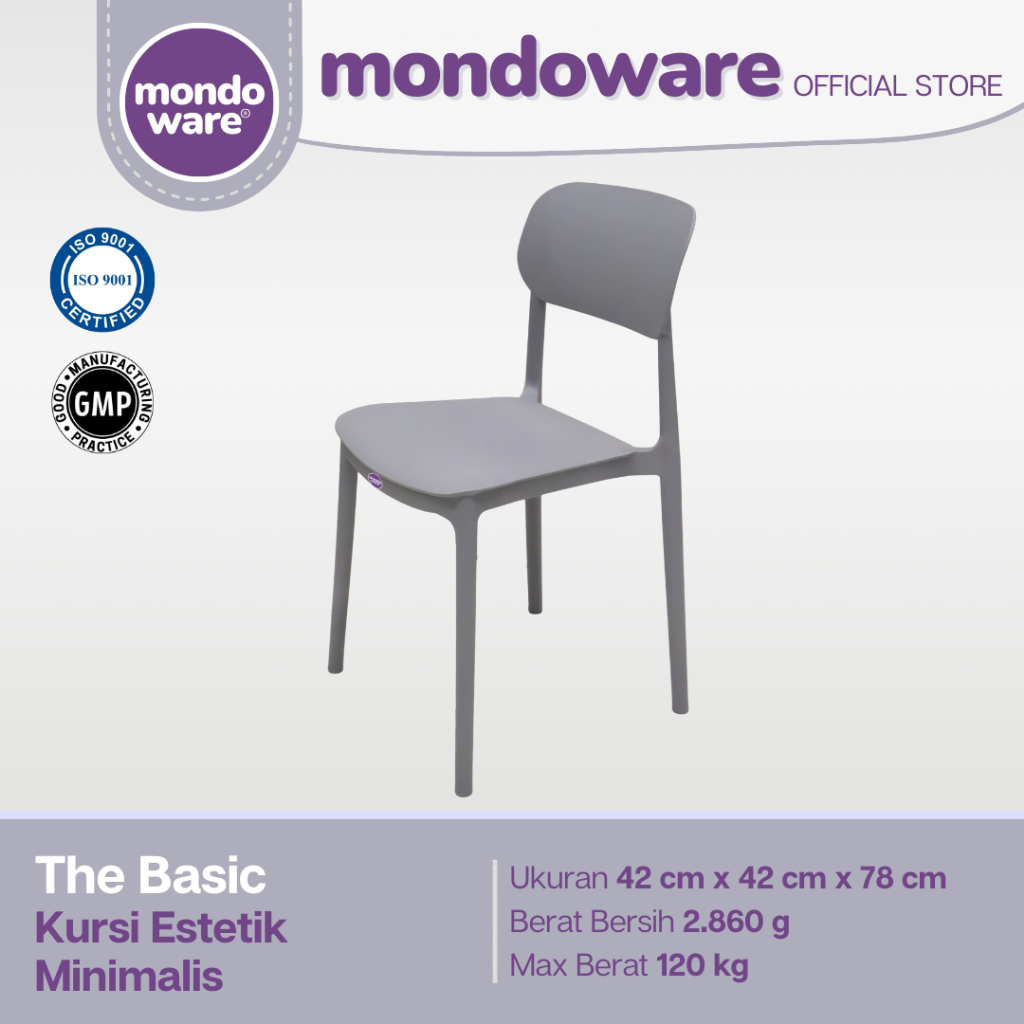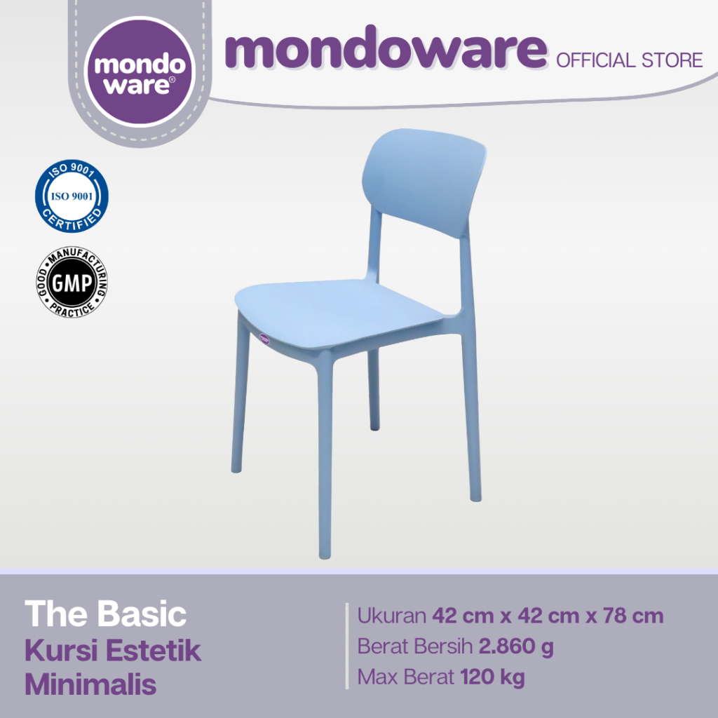 MONDOWARE | Kursi Makan Estetik Minimalis Ergonomis Plastik Fiberglass PP (S1-THE BASIC) - Kursi Tunggu Kantor/Kursi Kerja Belajar/Kursi Teras Santai/Kursi Cafe Kafe Restoran Hotel Kantin HoReKa/Kursi Sekolah Event Outdoor Pameran Gereja