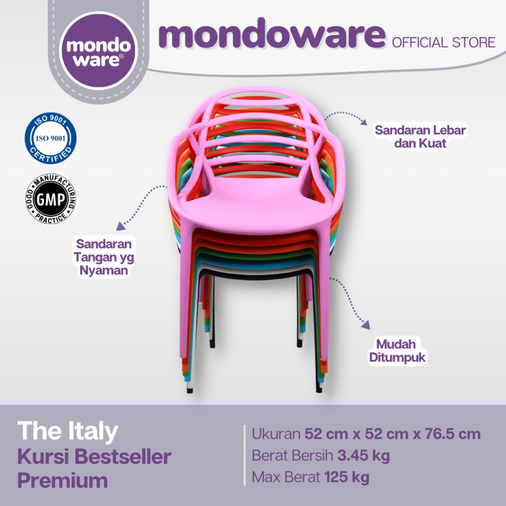 MONDOWARE | Kursi Makan Premium/Kursi Cafe/Kursi Teras Premium/Kursi HoReKa Premium/Kursi Cafe Resto Outdoor/Kursi Santai/Kursi Rumah/Kursi Sandar/Kursi Franchise/Kursi Makan Outdoor Estetik/Kursi Plastik Premium/Kursi Fiberglass Fiber PP (R161-The Italy)