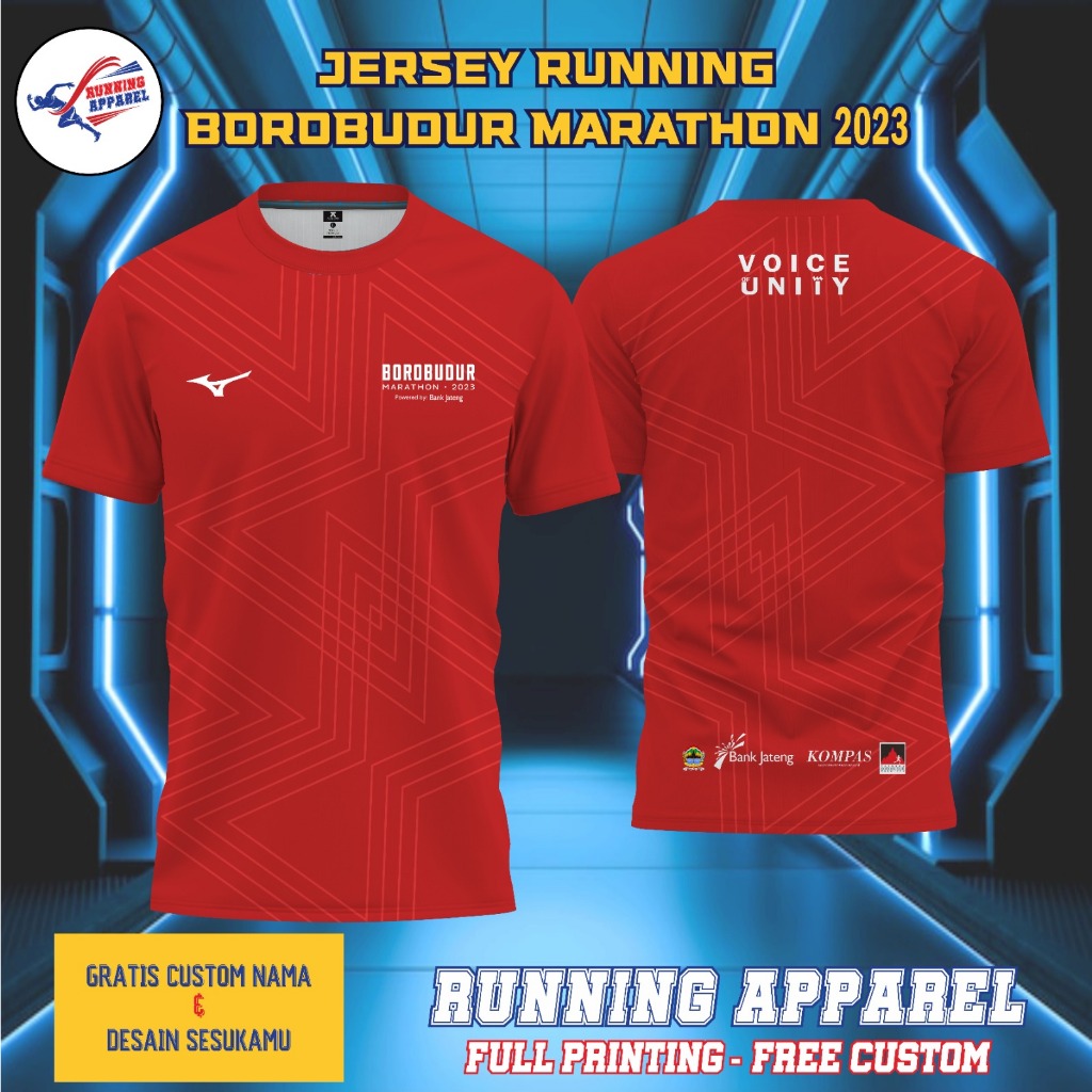 Jersey Running Custom Komunitas & Event BOROBUDUR MARATHON 2023 – Dryfit Milano Full Printing | Bisa Nama & Logo