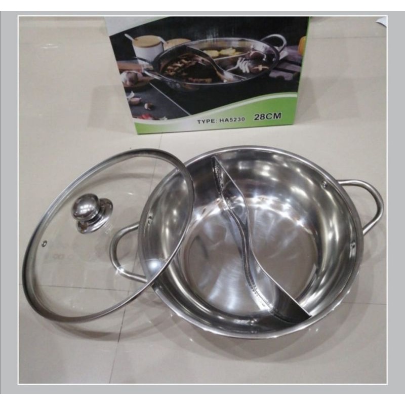 Panci Shabu Sekat 2/Panci Hot Pot 28cm Sekat 2