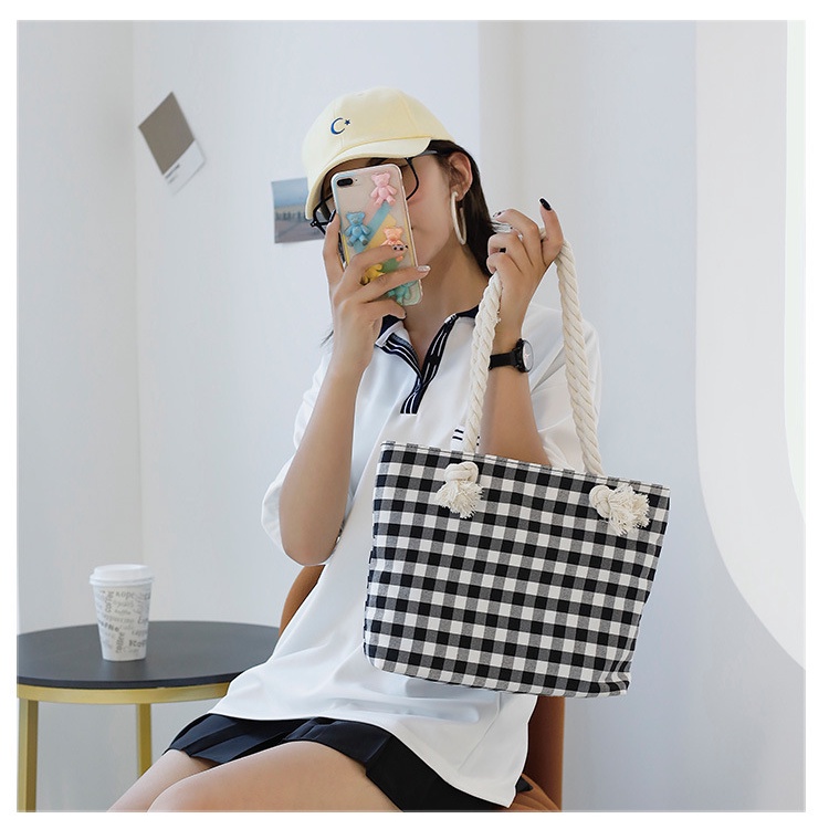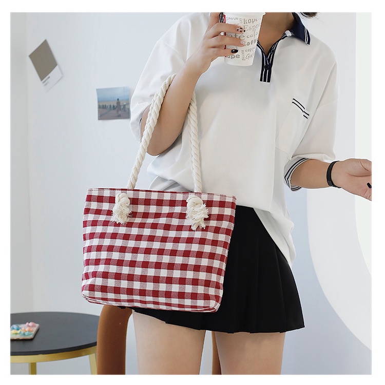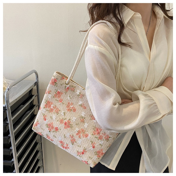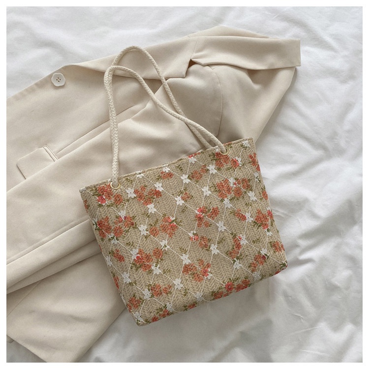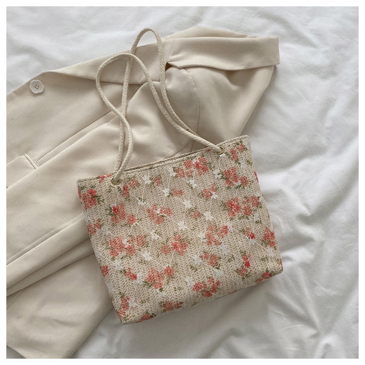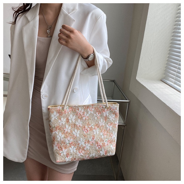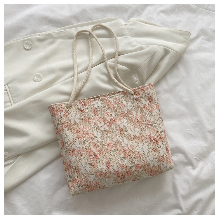 DBCOL Tas Tote Wanita Bahan Anyam Jerami Motif Lace Pita/Totebag Fashion Korea Motif Lace Pita Impor