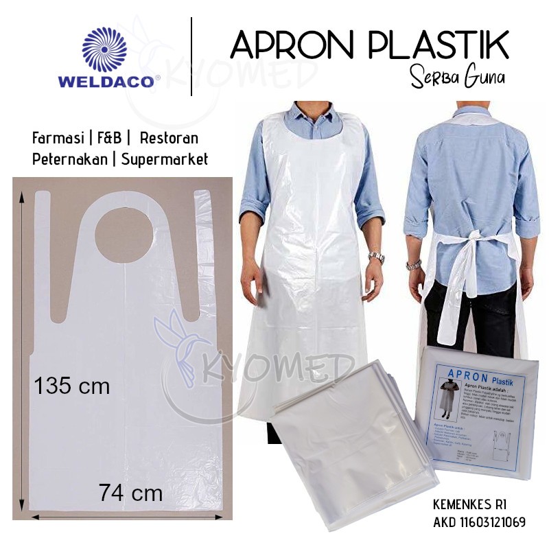 ONEMED ONEHEALTH WELDACO Apron Plastik Tebal isi 10 - Celemek Plastik Medis - Industri - Dapur