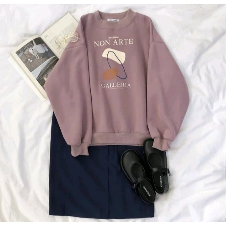 NON ARTE GALLERIA OVERSIZE SWEATER OBLONG CREWNECK WANITA
