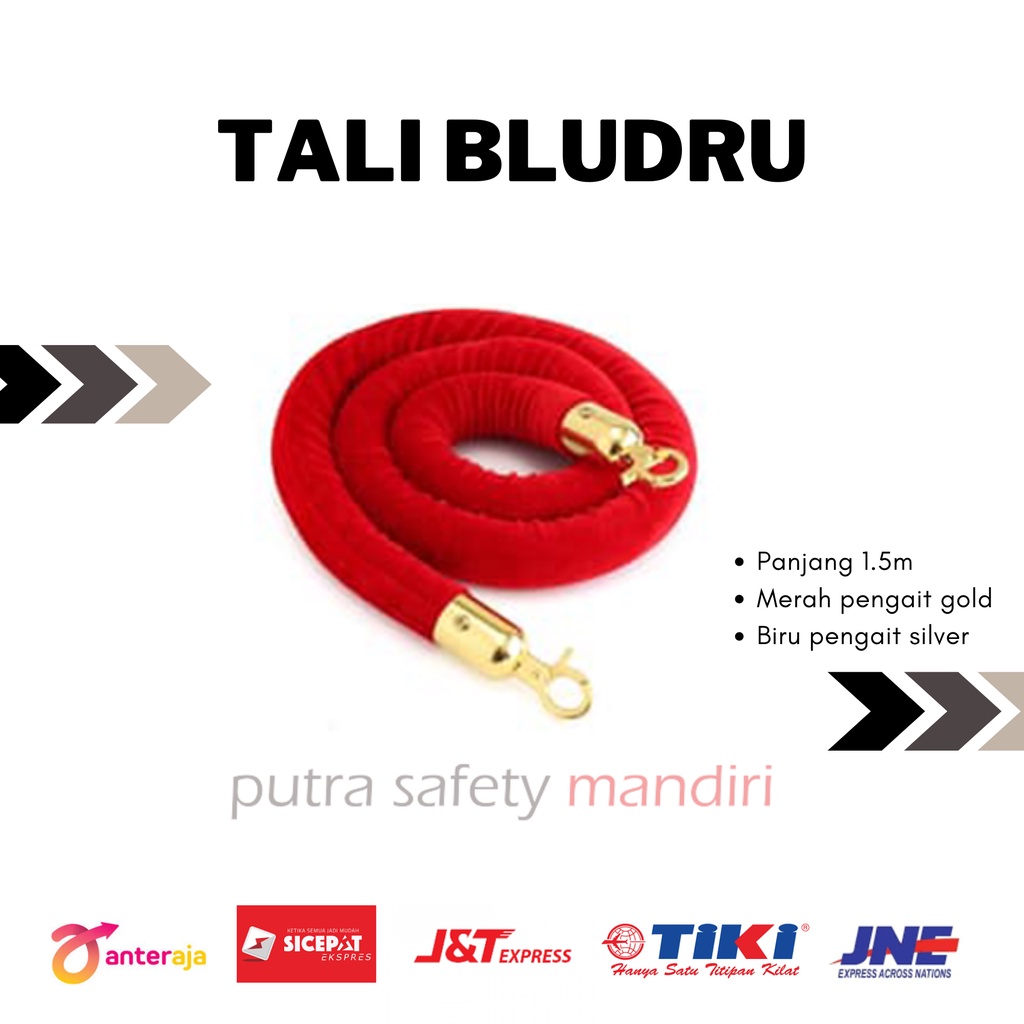 STANDING BARRIER TIANG PEMBATAS ANTRIAN BANK MALL TINGGI 90 CM TALI BLUDRU KEPALA BULAT STAINLESS STEEL