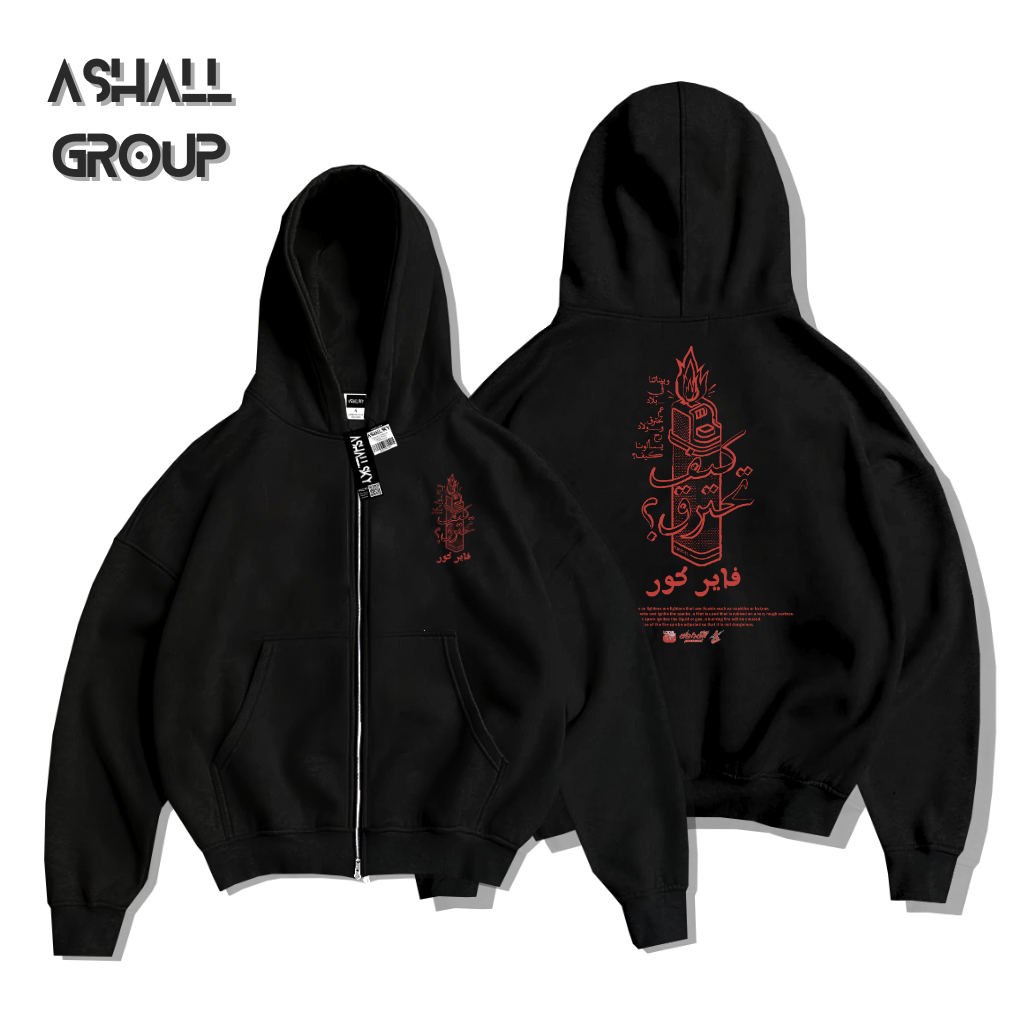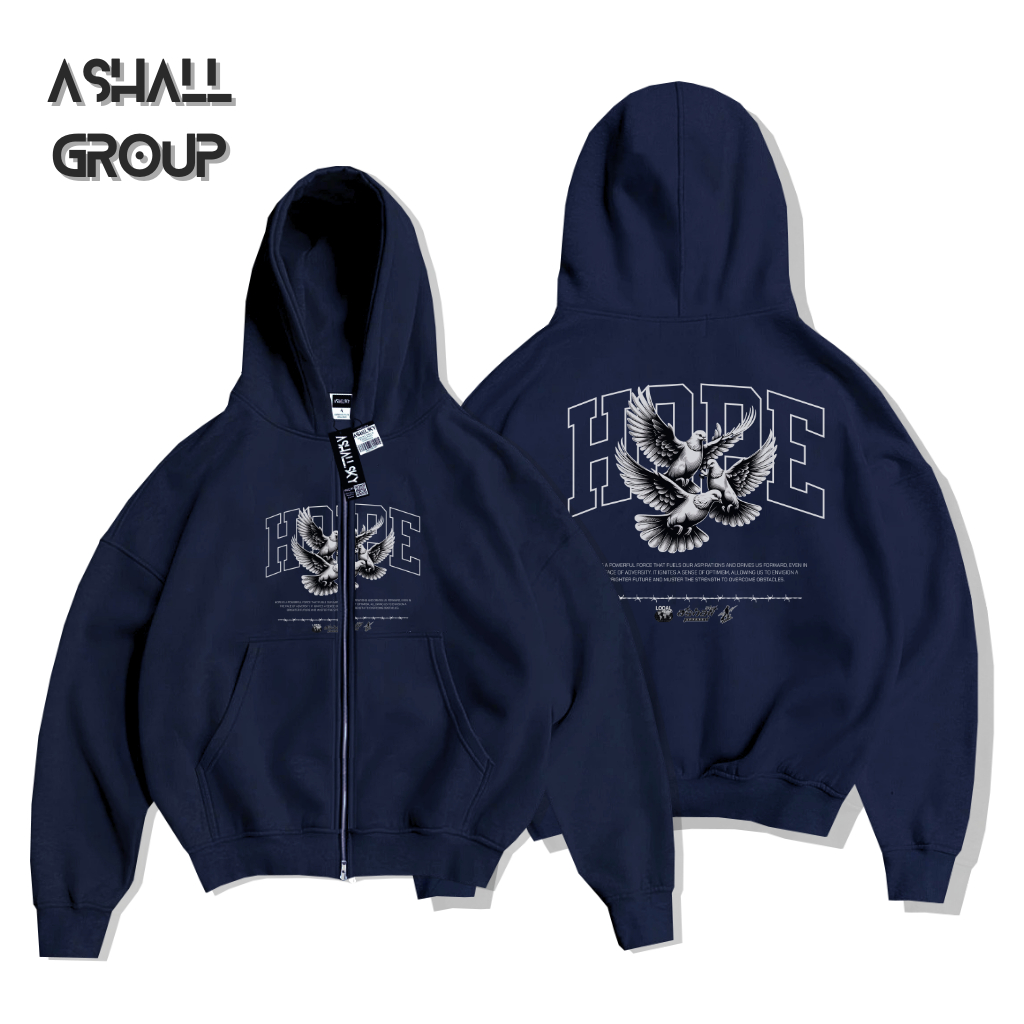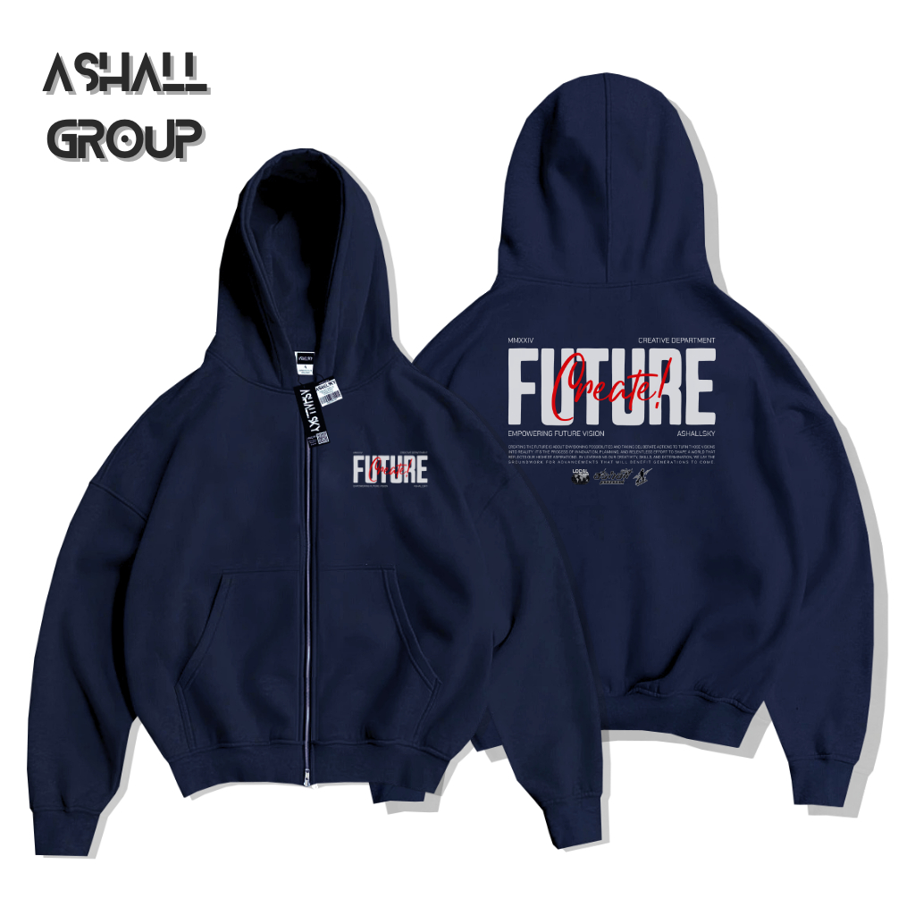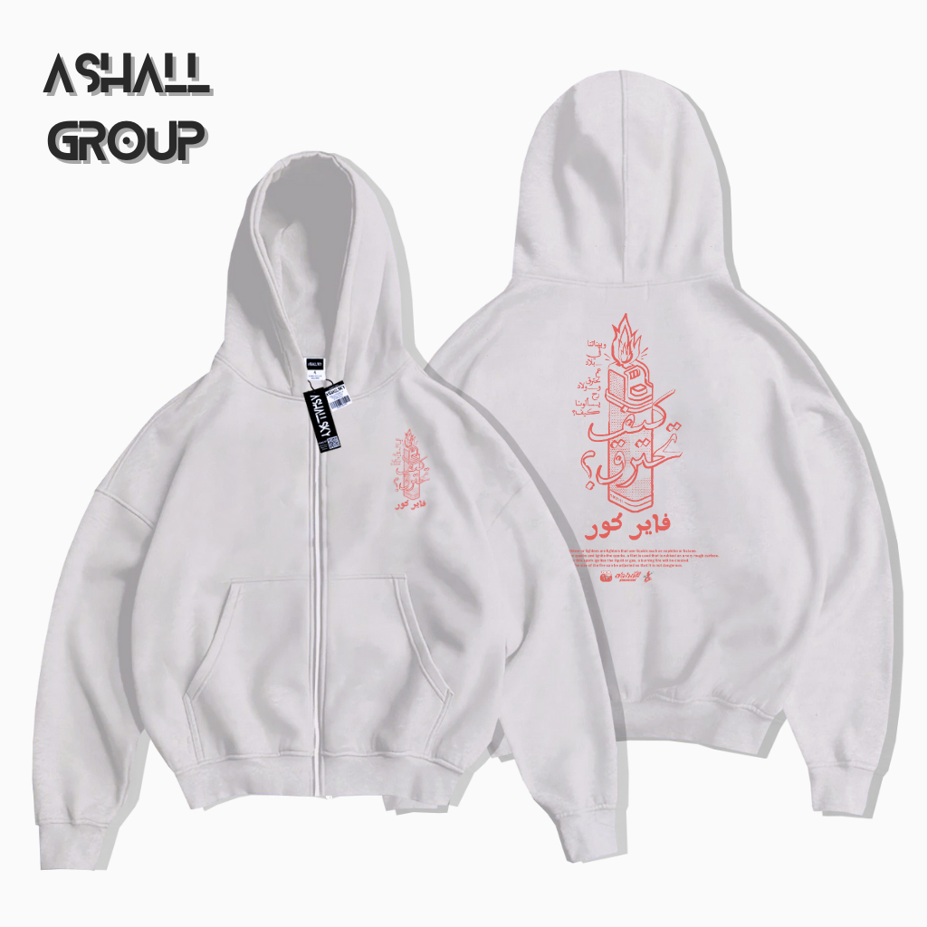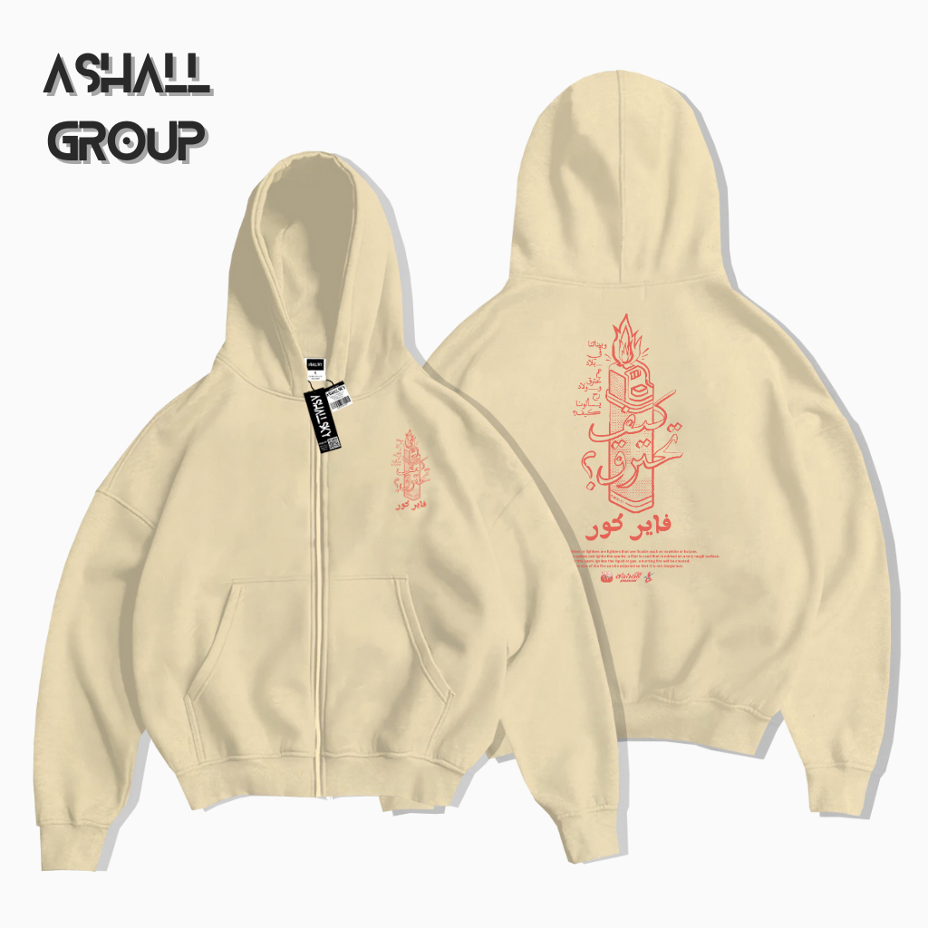 Berdine Zipper Boxy Oversize Motif Match Warna Cream Bahan Katun Gsm 28