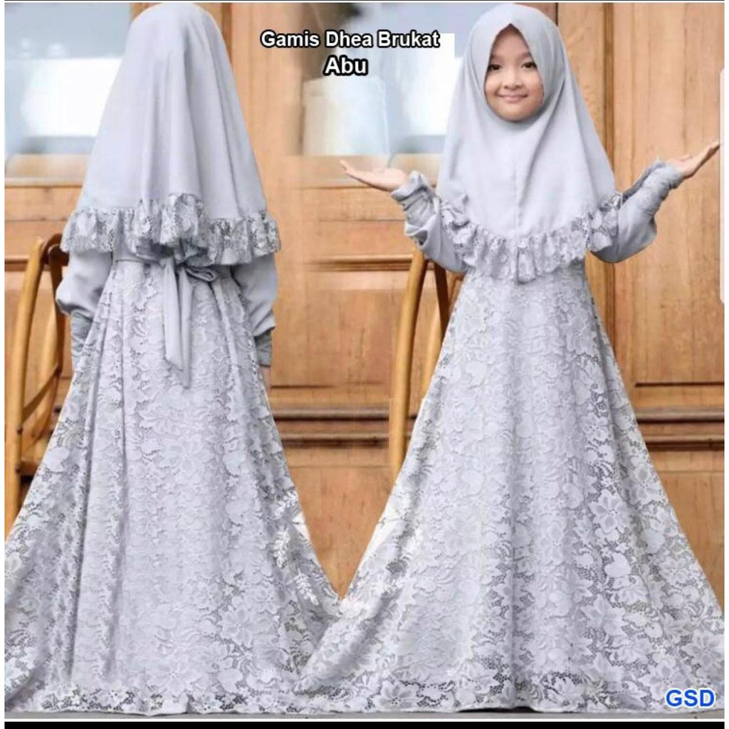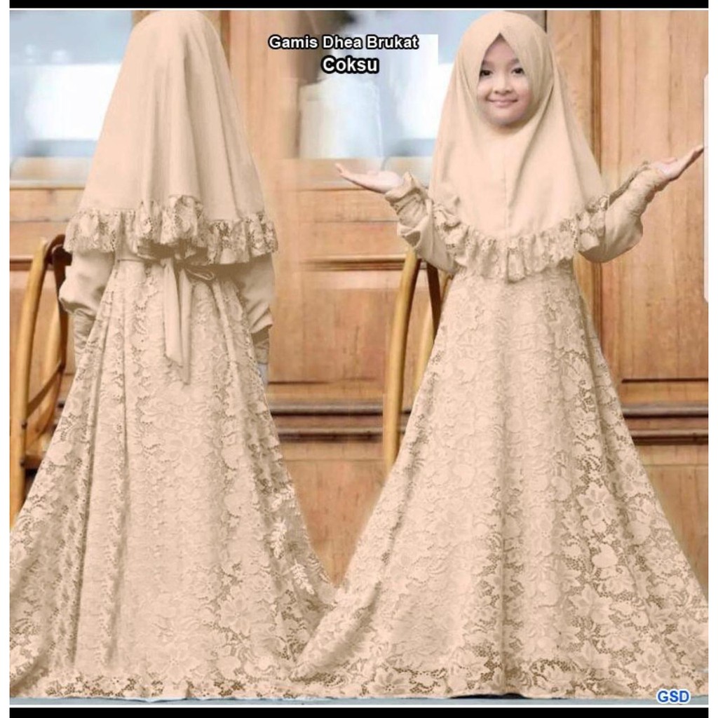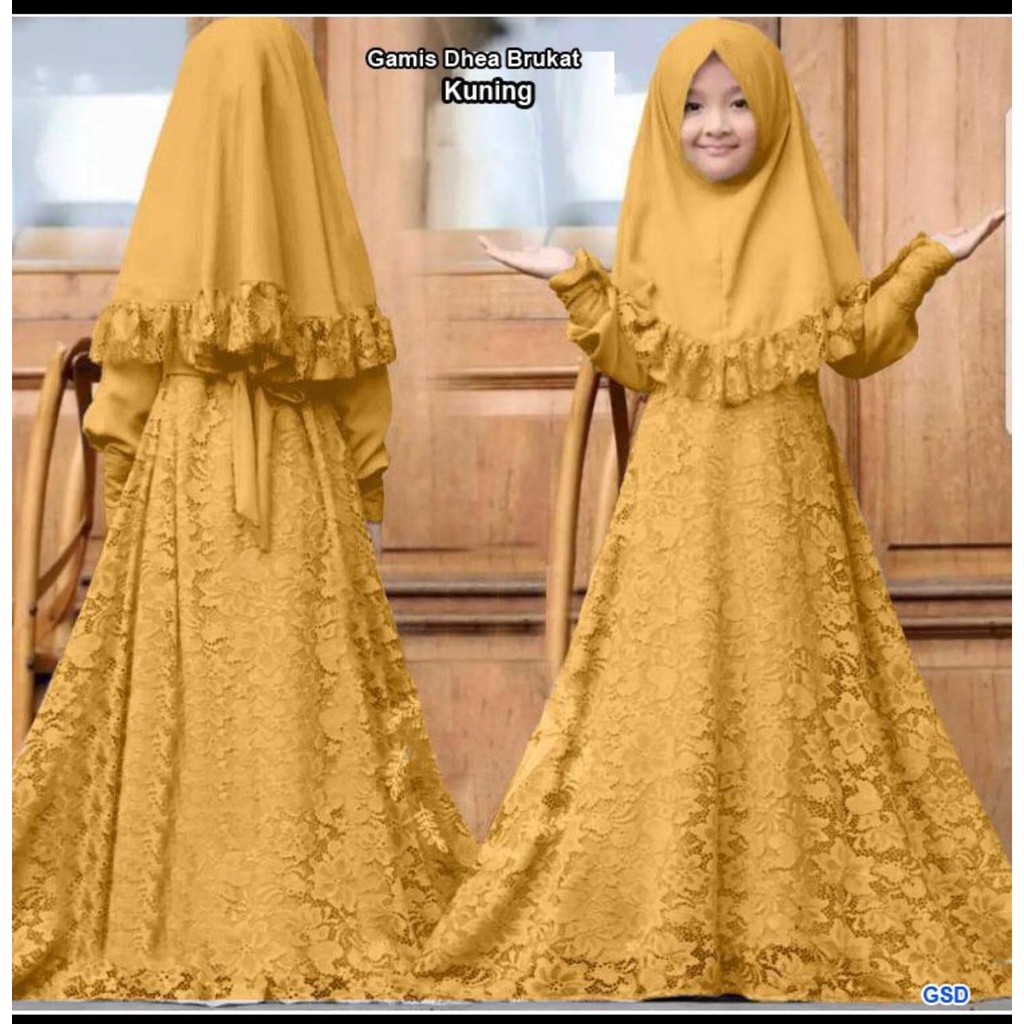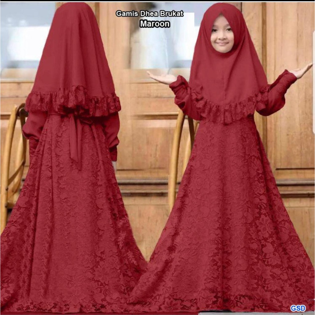 ASYA Baju Gamis Anak Muslim Brukat Lengan Panjang Usia 6-9th Free Bergo