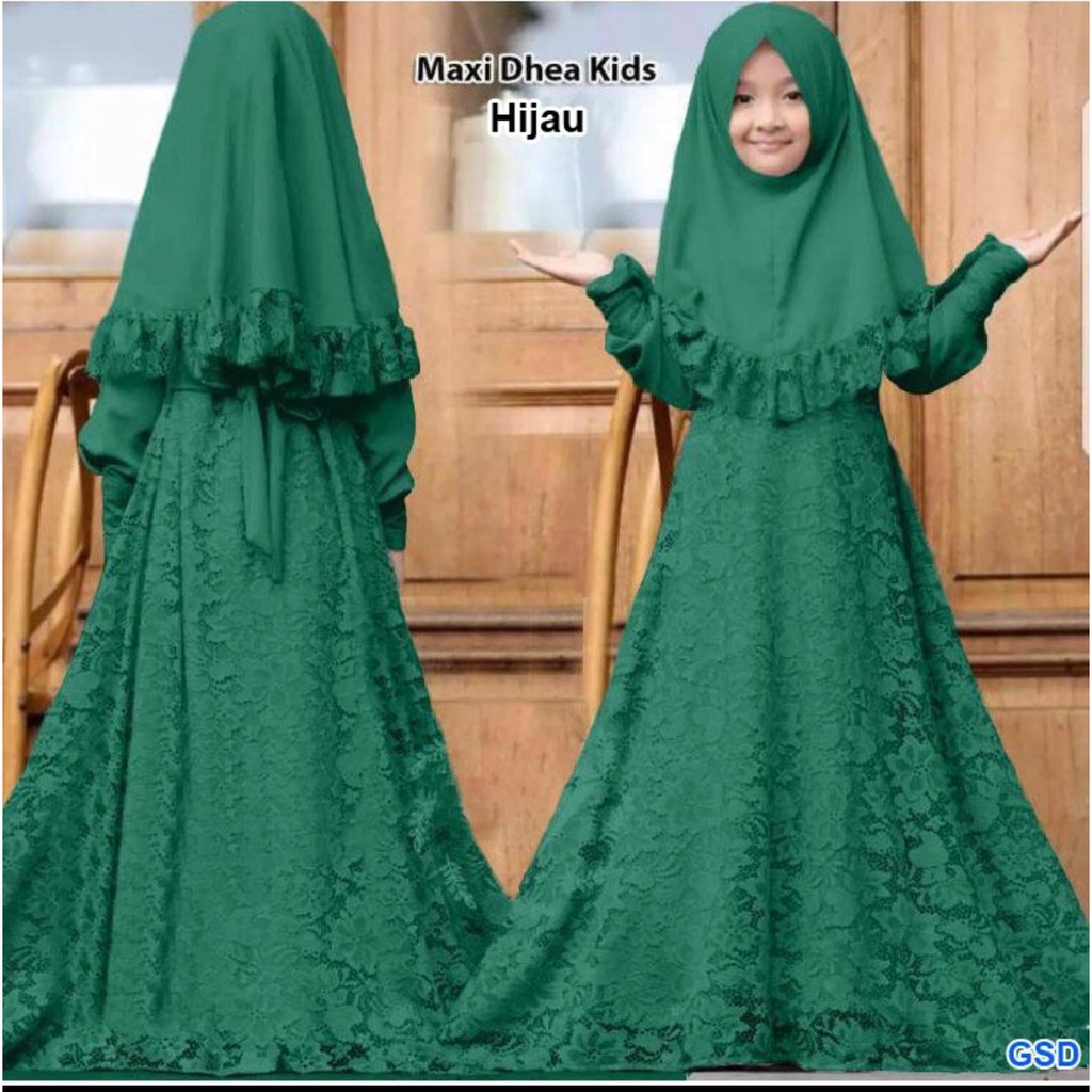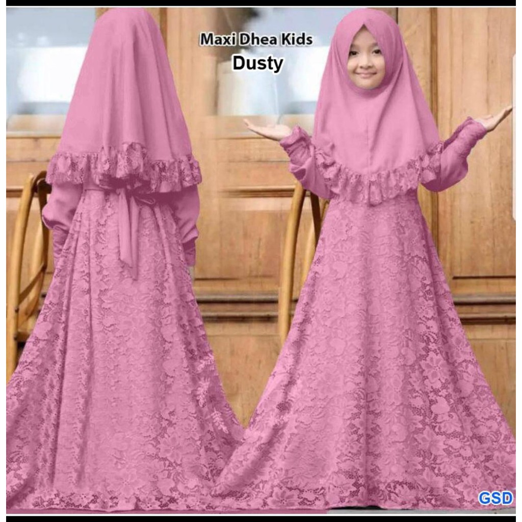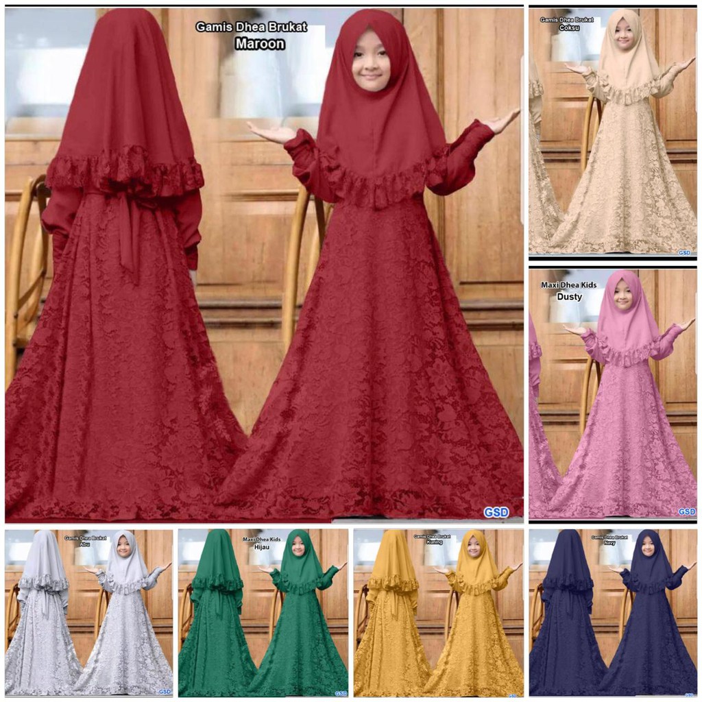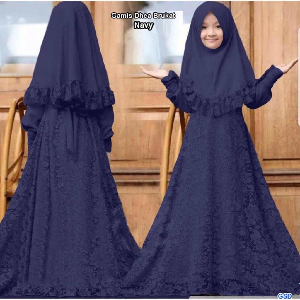ASYA Baju Gamis Anak Muslim Brukat Lengan Panjang Usia 6-9th Free Bergo