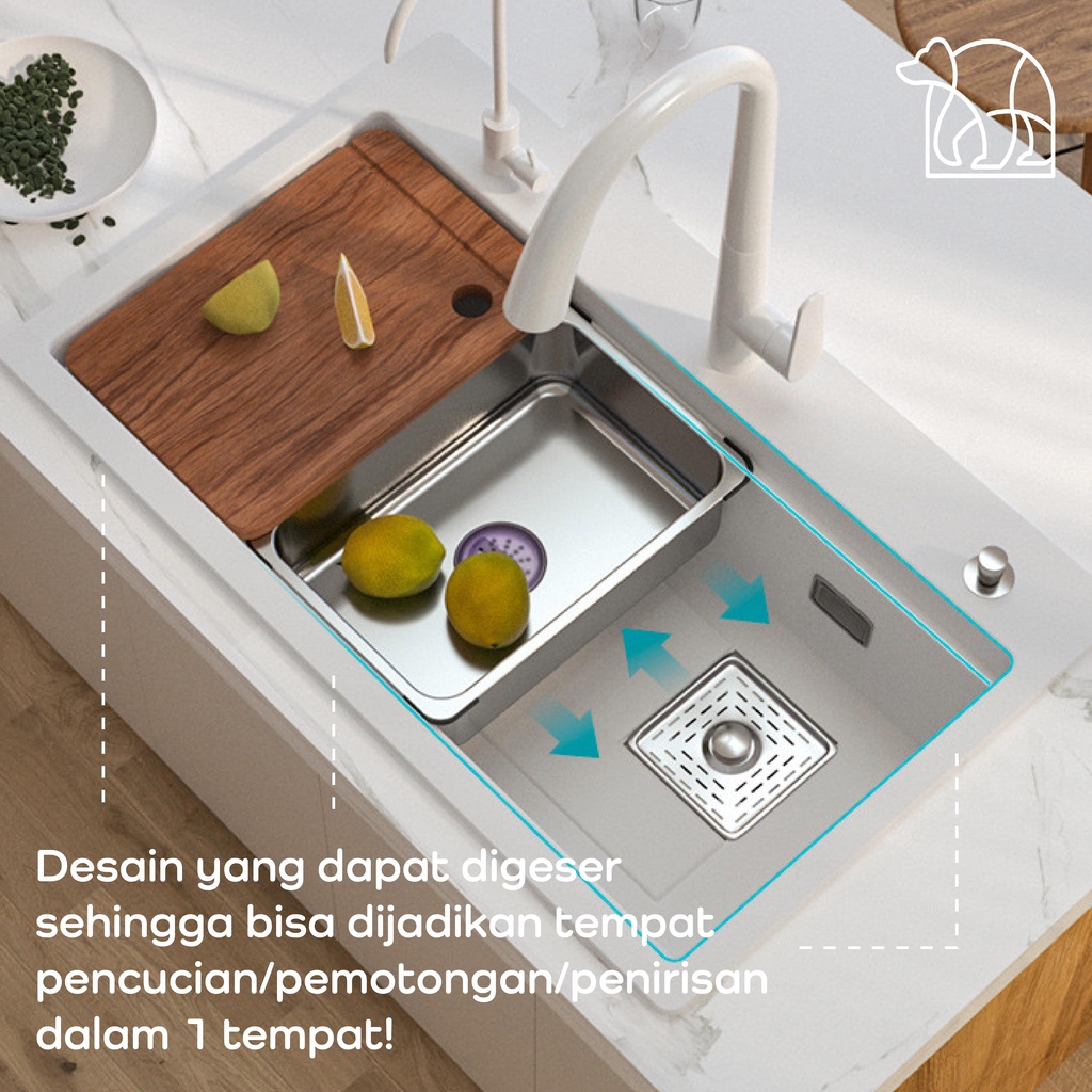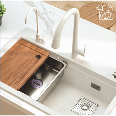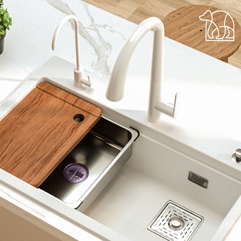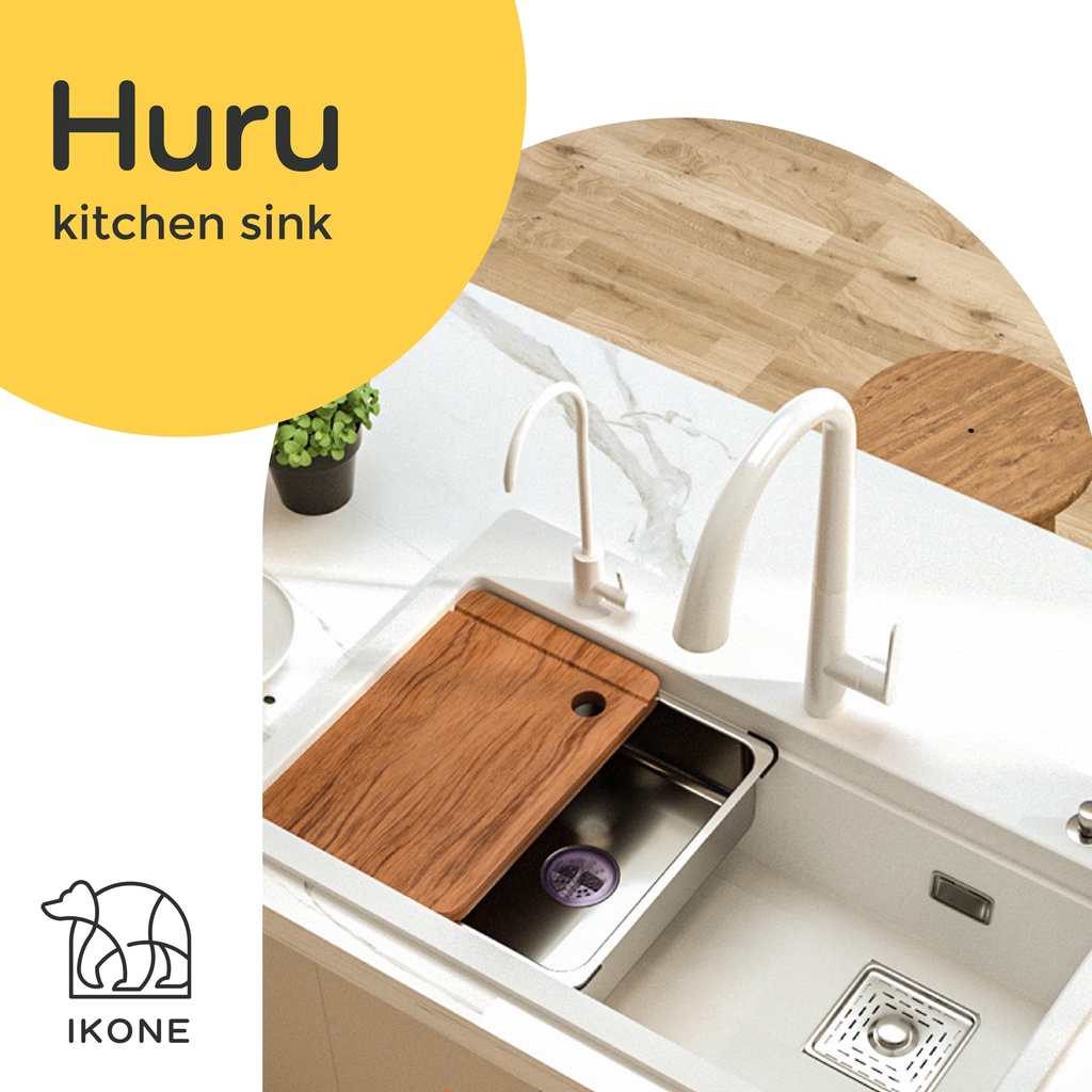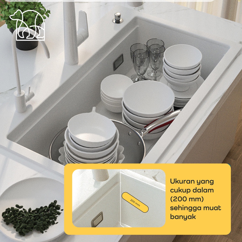 【IKONE】HURU Kitchen Sink Quartz Stone White Faucet Wastafel dapur Lengkap Faucet Sink Putih