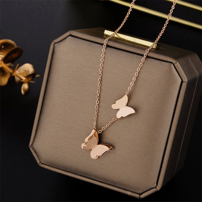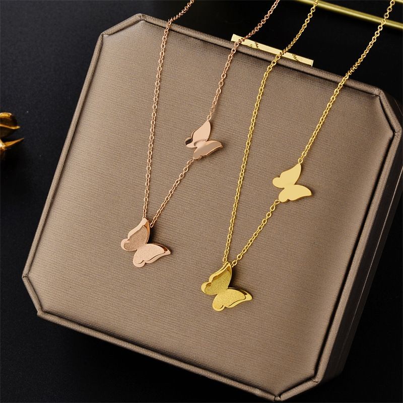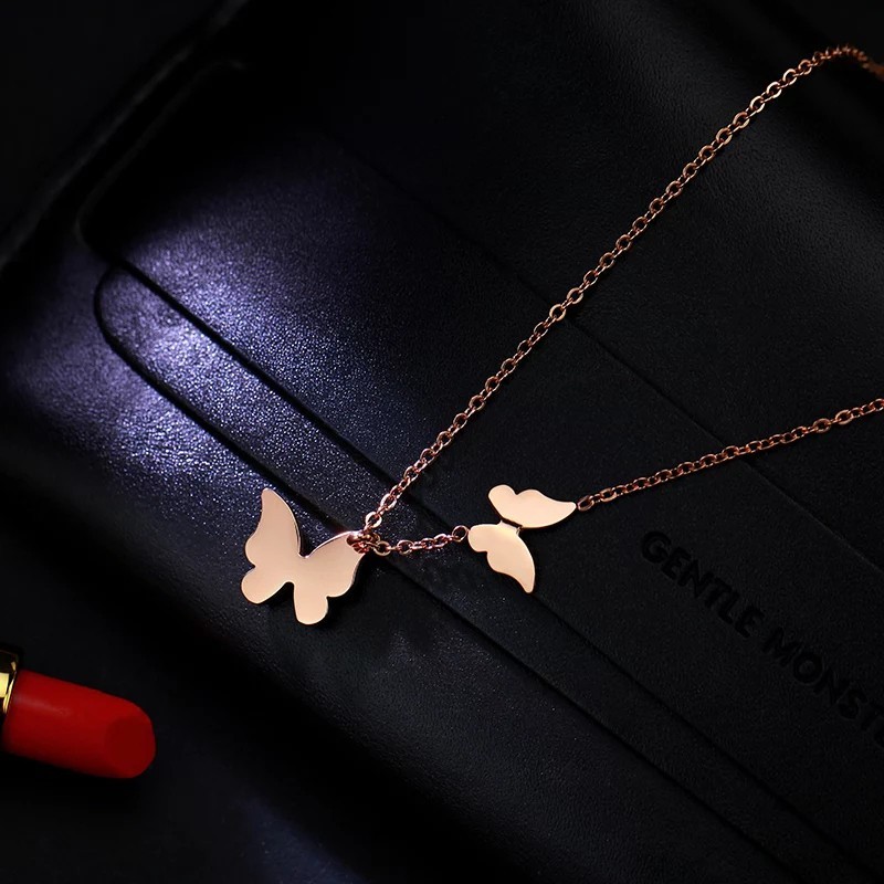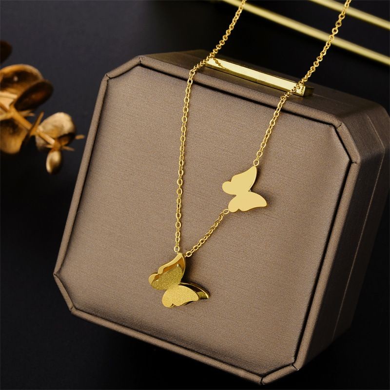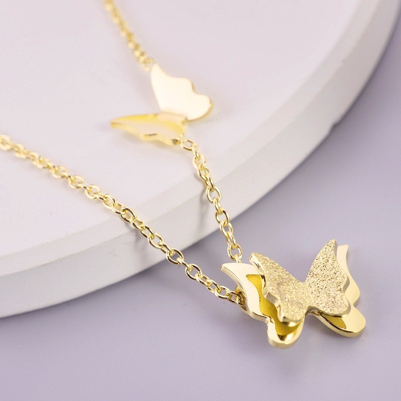 Kalung Kupu-Kupu Pasir Titanium Wanita – Desain Anggun & Elegan | Anti Pudar & Anti Karat | Harga Grosir Bisa COD